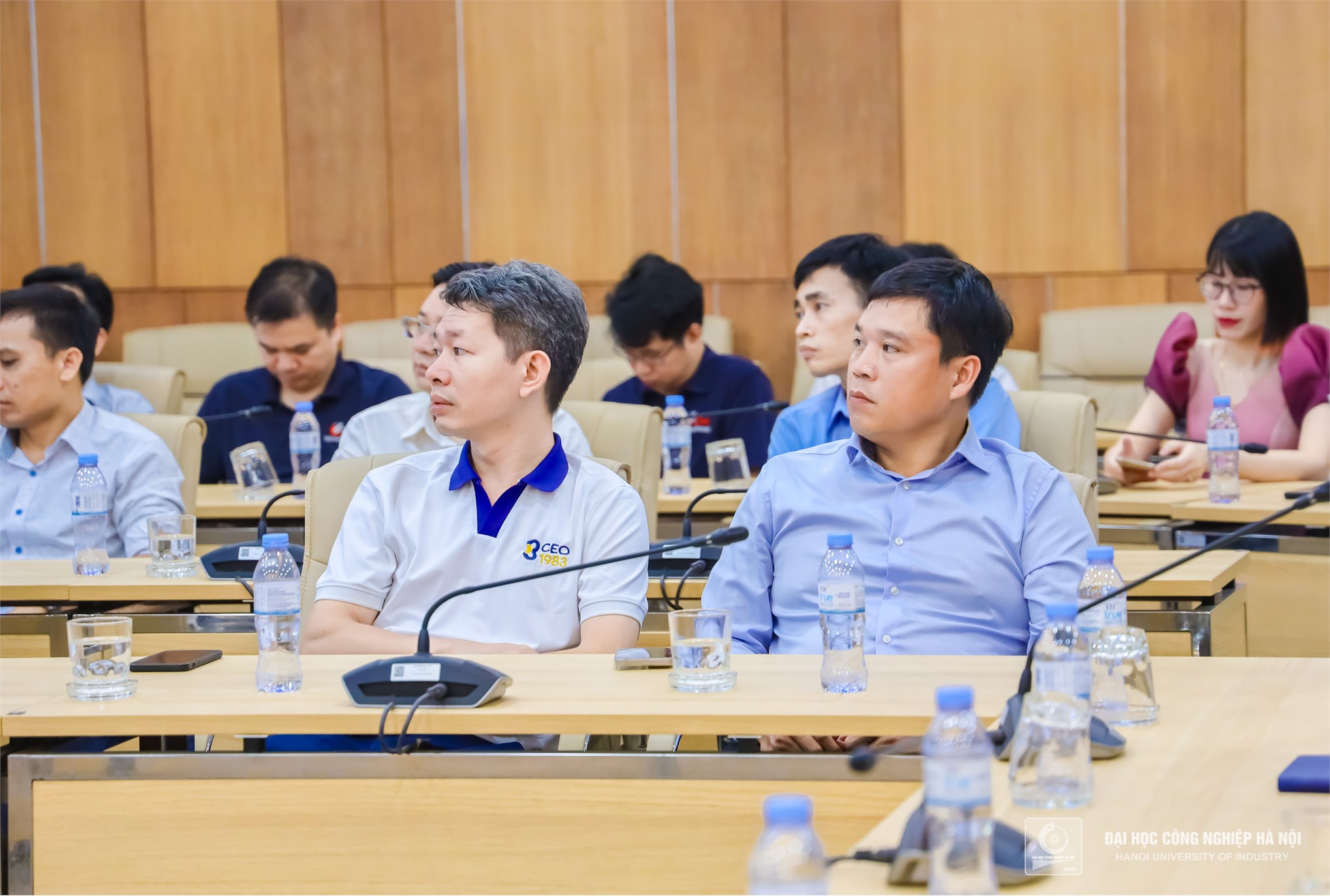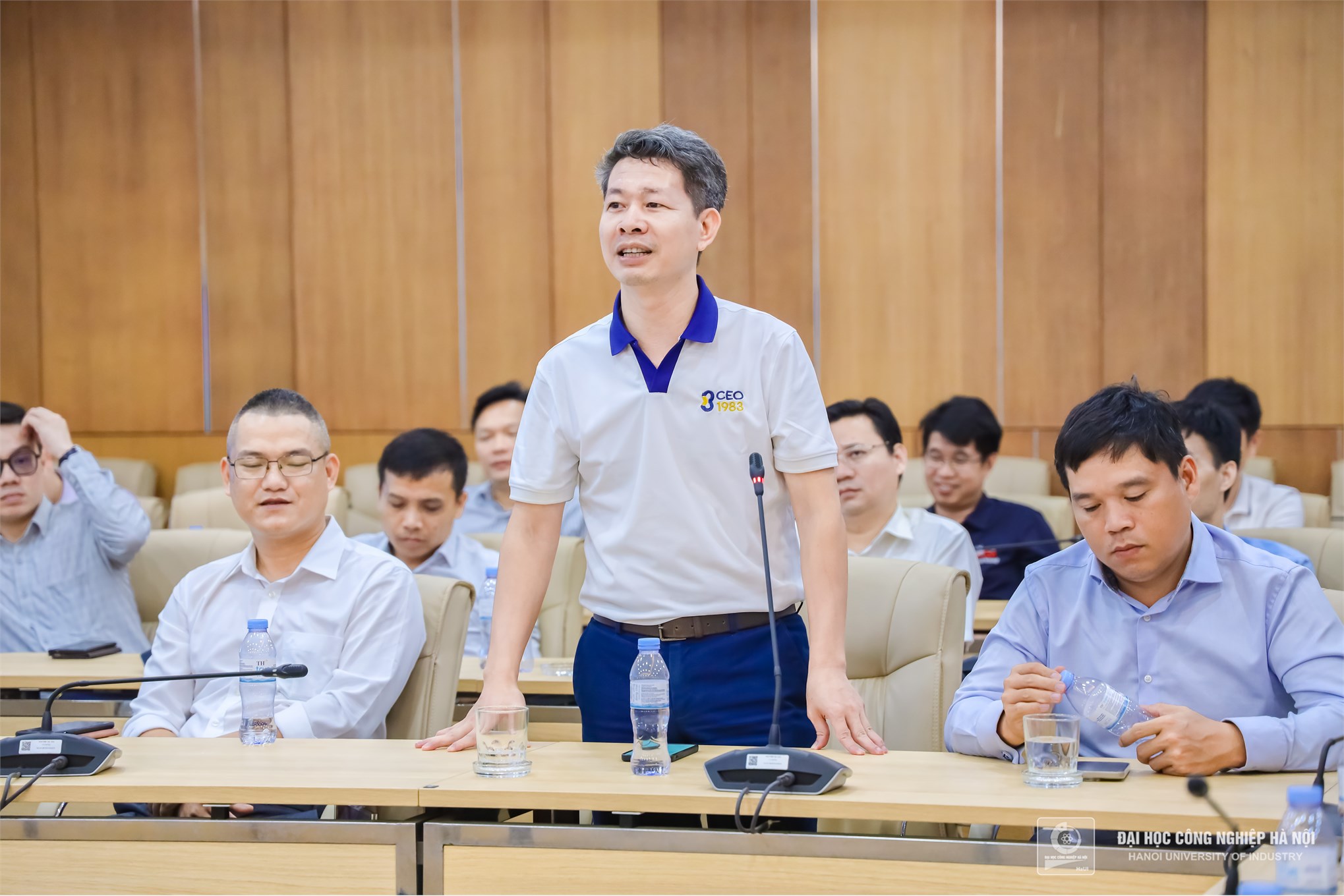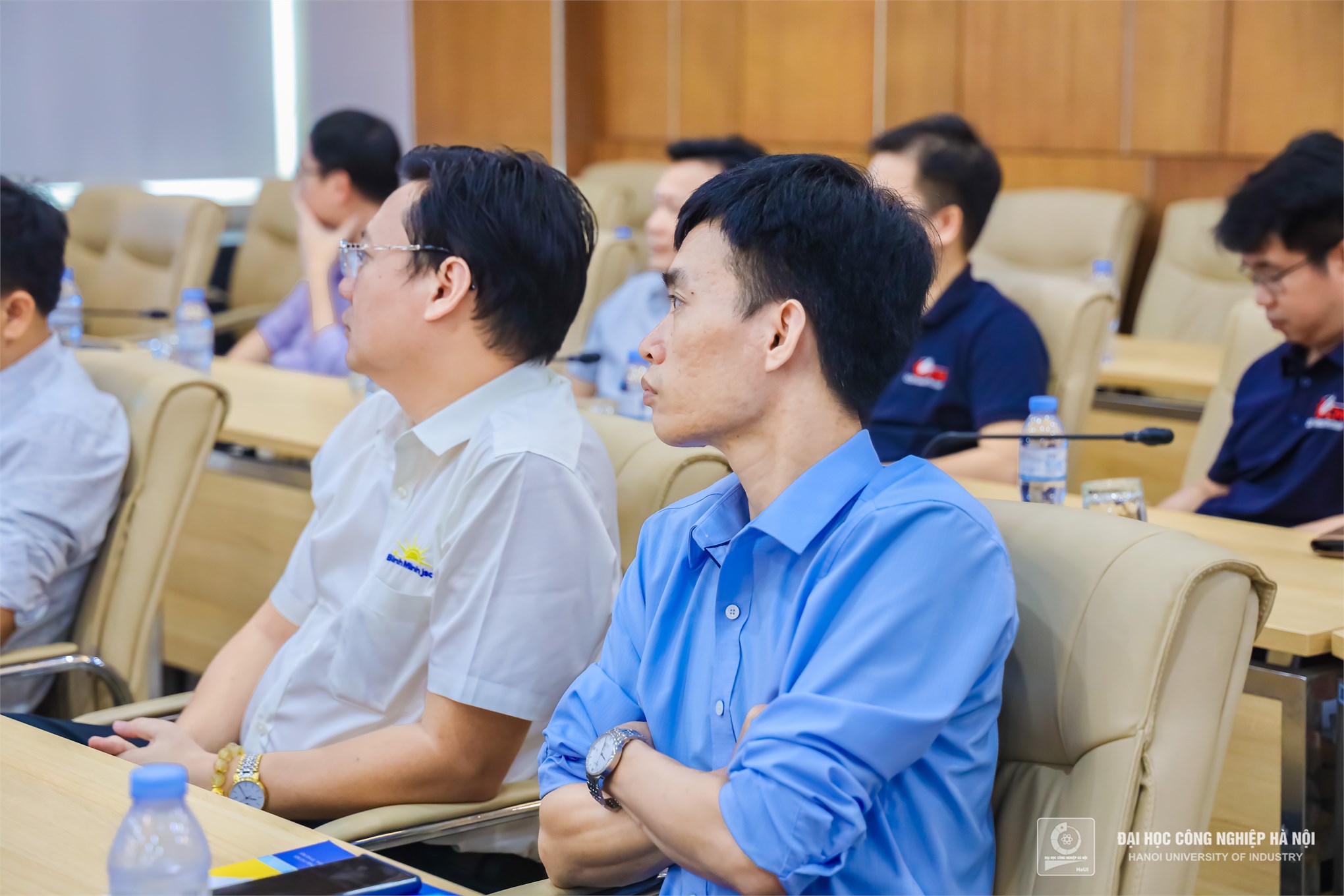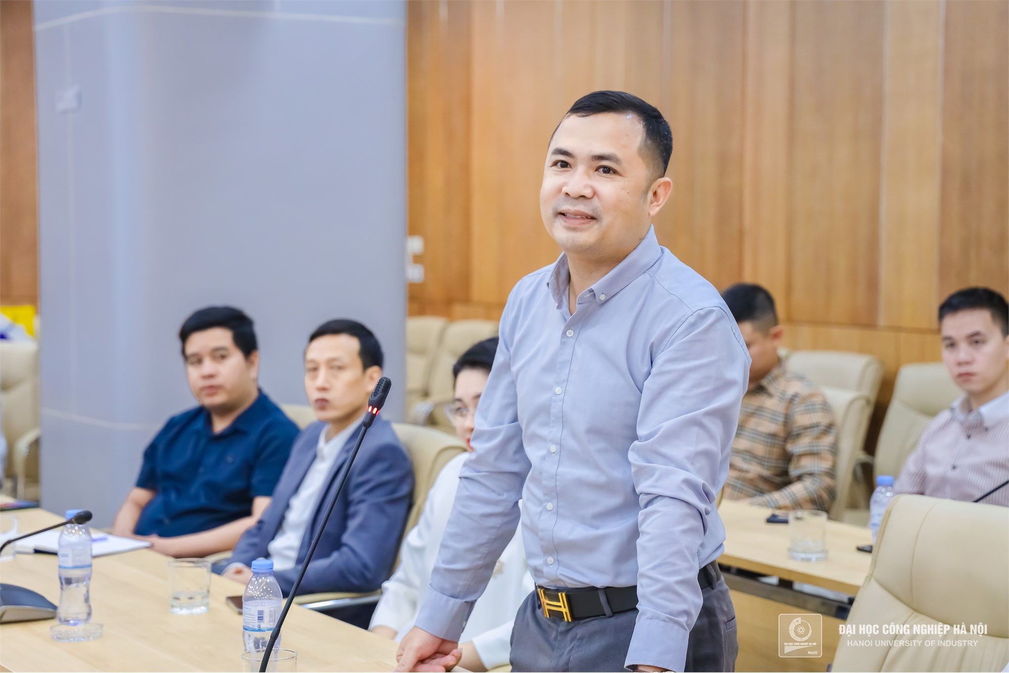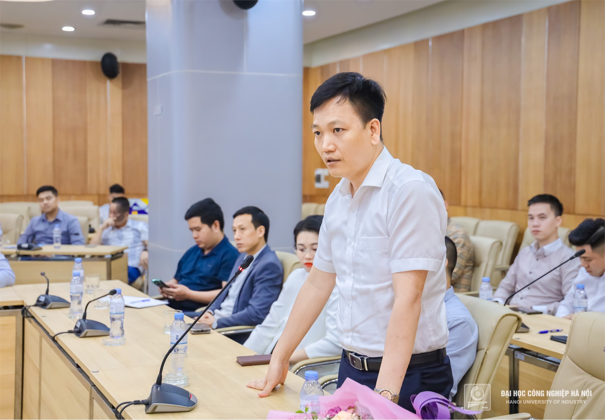 TS. Nguyễn Văn Thành – Phó Trưởng phòng phụ trách Phòng Hợp tác Đối ngoại trình bày mô hình hợp tác doanh nghiệp của Đại học Công nghiệp Hà Nội
