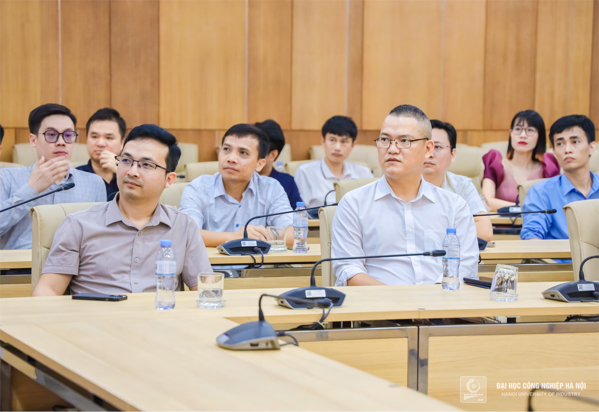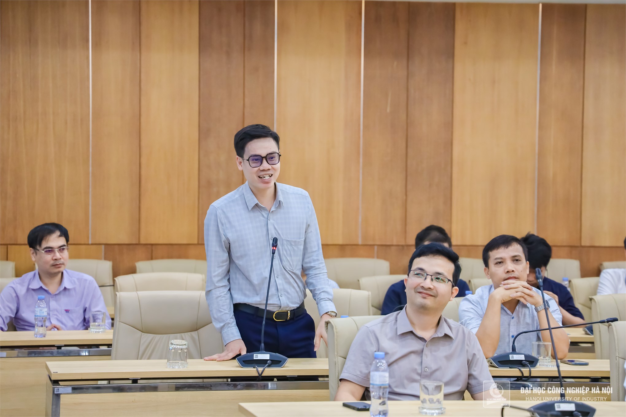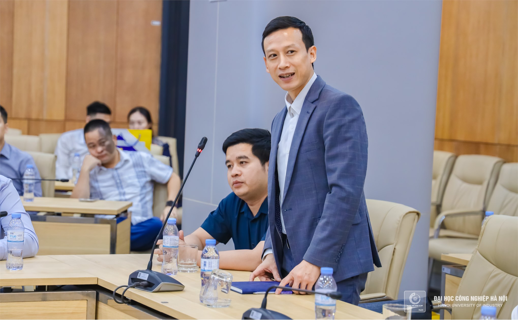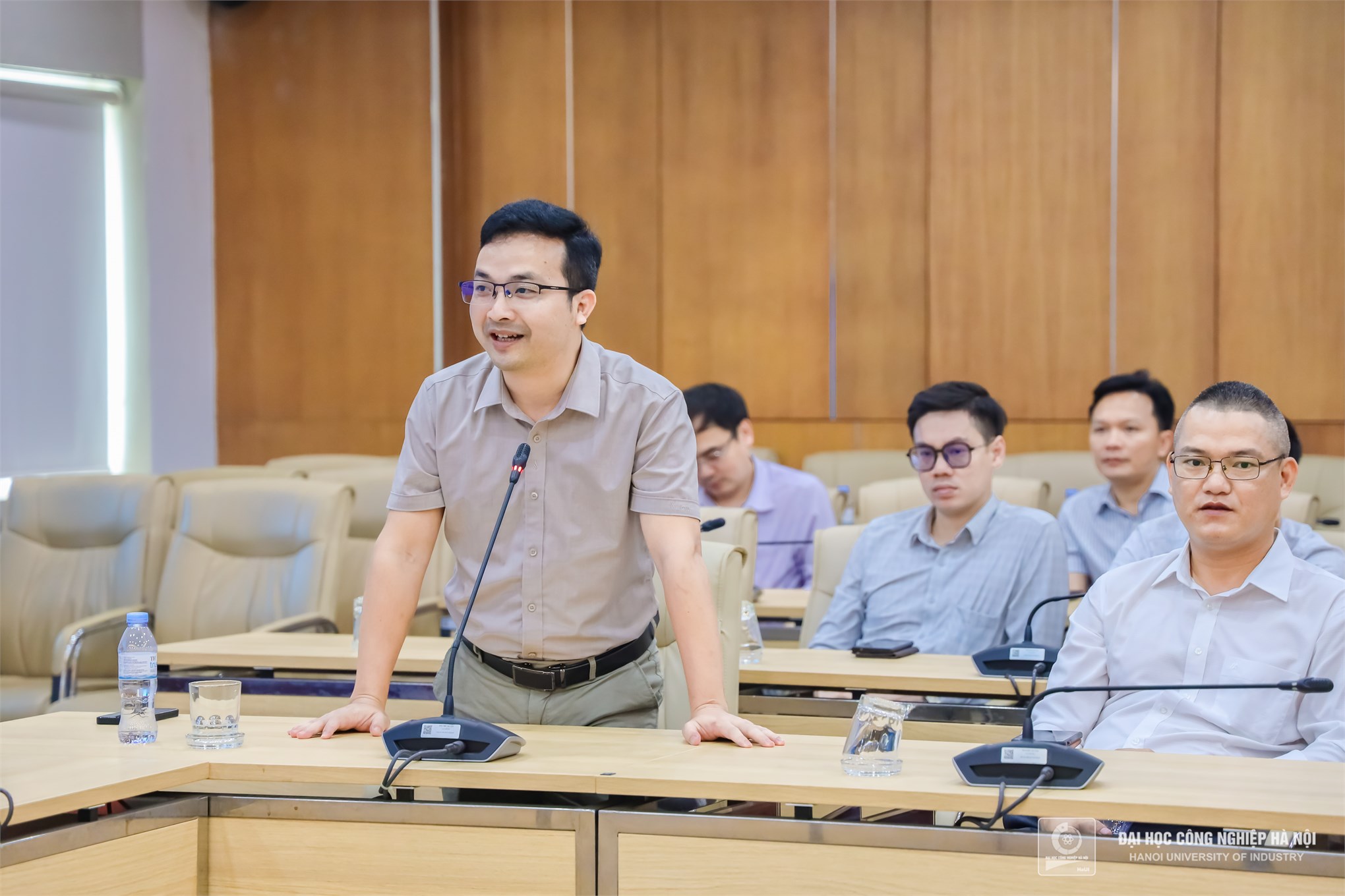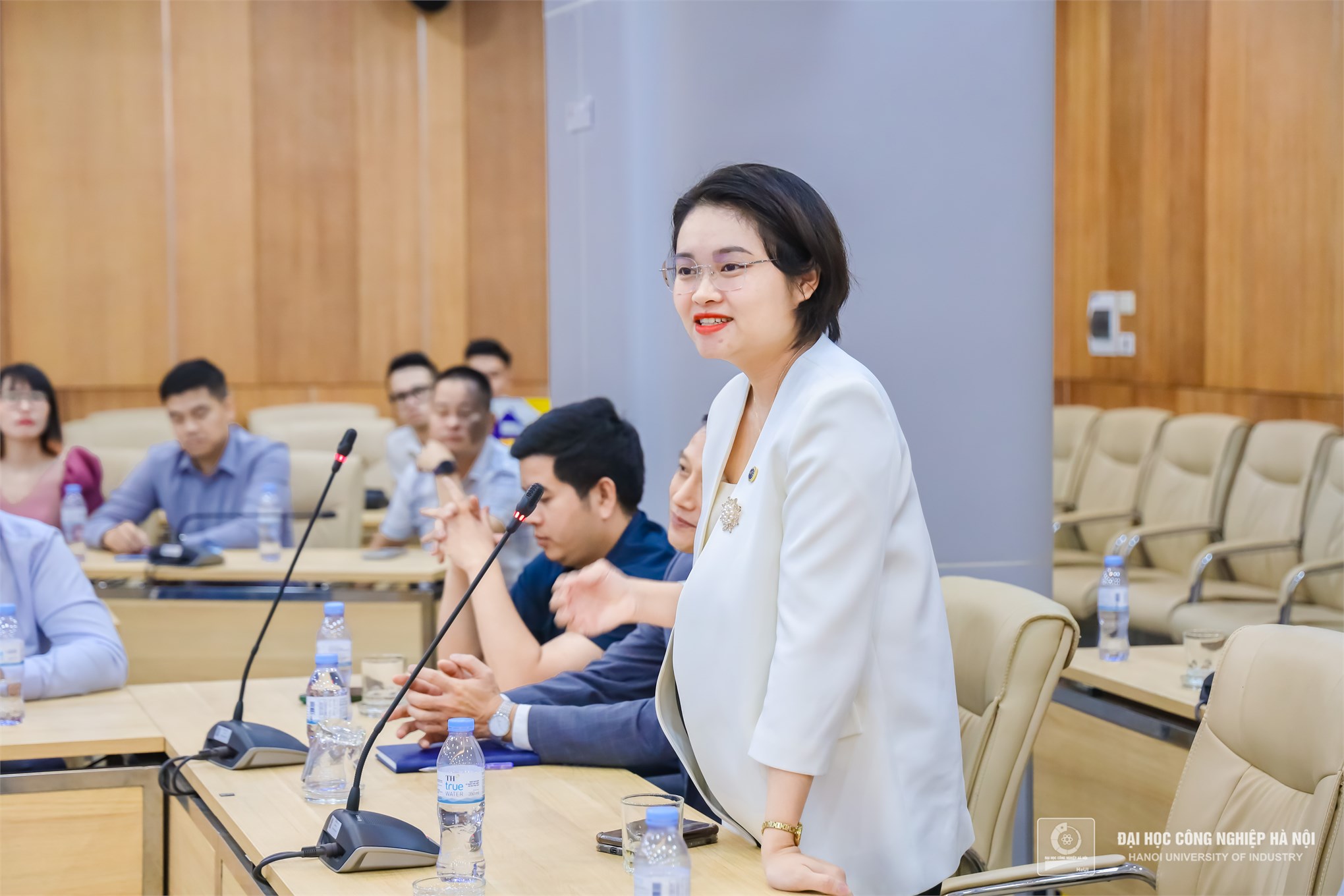 TS. Nguyễn Văn Thành – Phó Trưởng phòng phụ trách Phòng Hợp tác Đối ngoại trình bày mô hình hợp tác doanh nghiệp của Đại học Công nghiệp Hà Nội
