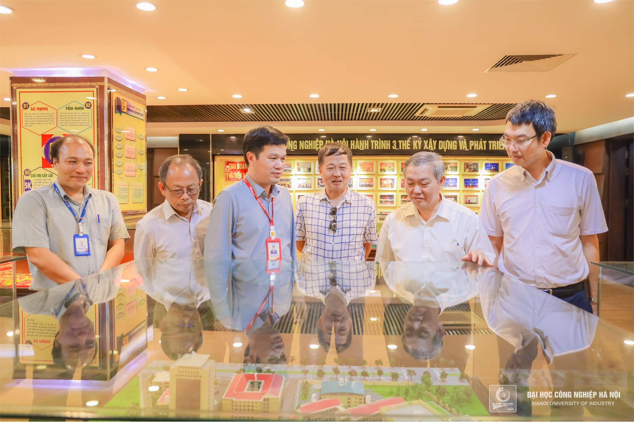Trong khuôn khổ của buổi làm việc, Đoàn công tác đã tham quan phòng truyền thống, Khoa Công nghệ thông tin, Khoa Điện tử.