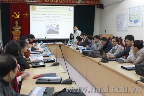 Tham gia buổi lễ khai giảng có TS. Hà Xuân Quang - Phó Hiệu trưởng Nhà trường, các chuyên gia của dự án, các giảng viên của trung tâm Việt - Nhật, khoa Điện tử và 23 học viên đến từ các trường CĐ Công nghiệp Cẩm Phả, CĐ Công nghiệp Nam Định, CĐ nghề Hà Nam, CĐ Công nghiệp thực phẩm...
