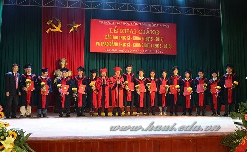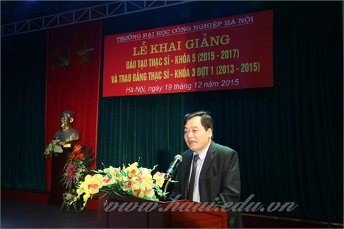 Sáng nay 19/12/2015, trường Đại học Công nghiệp Hà Nội đã long trọng tổ chức buổi lễ Khai giảng đào tạo thạc sỹ khóa 5 (2015-2017) và trao bằng thạc sỹ khóa 3 (2013-2015) đợt 1. Tham dự buổi lễ có đại diện Đảng uỷ, Giám hiệu, Công đoàn, Đoàn thanh niên, các phòng, khoa chức năng cùng các học viên tốt nghiệp và các tân học viên của niên khoá mới.