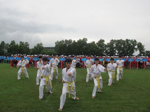 Để hưởng ứng cuộc vận động toàn dân rèn luyện thân thể theo gương Bác Hồ vĩ đại; chào mừng 115 năm ngày truyền thống nhà trường và đón nhận Huân chương Hồ Chí Minh, tại buổi lễ khai mạc, đ/c Nguyễn Văn Hùng - Chủ tịch Công đoàn trường đã phát động phong trào tập luyện thể dục thể thao trong CBVC, HSSV toàn trường.