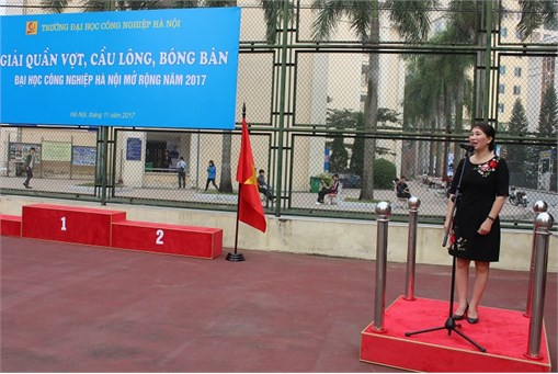 Phát biểu Khai mạc Giải, TS. Bùi Thị Ngân – Phó Hiệu trưởng Nhà trường – Trưởng ban tổ chức giải khẳng định: “Giải thi đấu quần vợt, cầu lông và bóng bàn là một trong những hoạt động thể thao thiết thực được tổ chức để chào mừng Ngày Nhà giáo Việt Nam 20/1, hướng tới chào mừng Đại hội Công đoàn Trường ĐHCNHN. Không những vậy, Giải thi đấu được tổ chức phù hợp với nhu cầu và vào thời gian hợp lý nên vừa khuyến khích được đông đảo lượng người tham dự, vừa tạo được phong trào rèn luyện sức khỏe cho cán bộ, giảng viên, người lao động trong trường”. TS. Bùi Thị Ngân chúc giải thể thao thành công tốt đẹp và được duy trì qua các năm tiếp theo; chúc các vận động viên dự giải sẽ đạt thành tích cao, tiếp tục rèn luyện, đảm bảo sức khỏe để hoàn thành tốt mọi nhiệm vụ được giao.