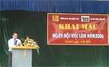 Ông Fkuda – Giám đốc cao cấp Công ty khu Công nghiệp Thăng Long phát biểu cảm ơn Ban lãnh đạo Nhà trường đã tạo điều kiện đồng tổ chức Ngày hội việc làm năm 2006.