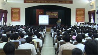 Cũng ngay trong sáng nay, tại Hội trường tầng 2, khu A đã diễn ra chương trìnhđàm thoại trực tuyếncủa các doanh nghiệp. Chương trình này thu hút hàng ngàn sinh viên tham dự. Hội trường không còn một chiếc ghế nào trống, rất nhiều sinh viên đã phải đứng ở hai phía cánh gà.