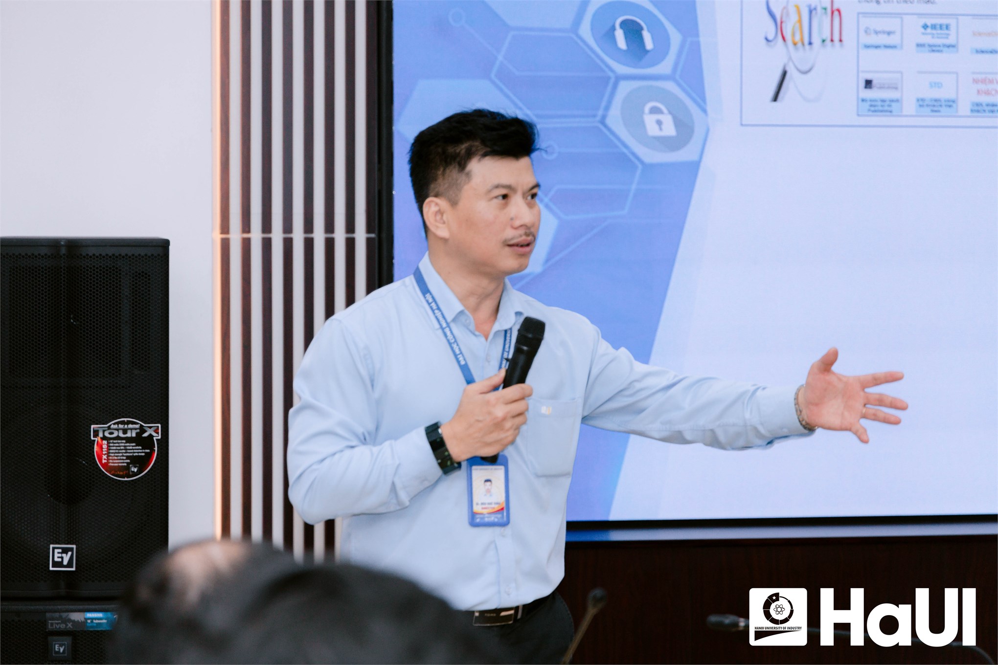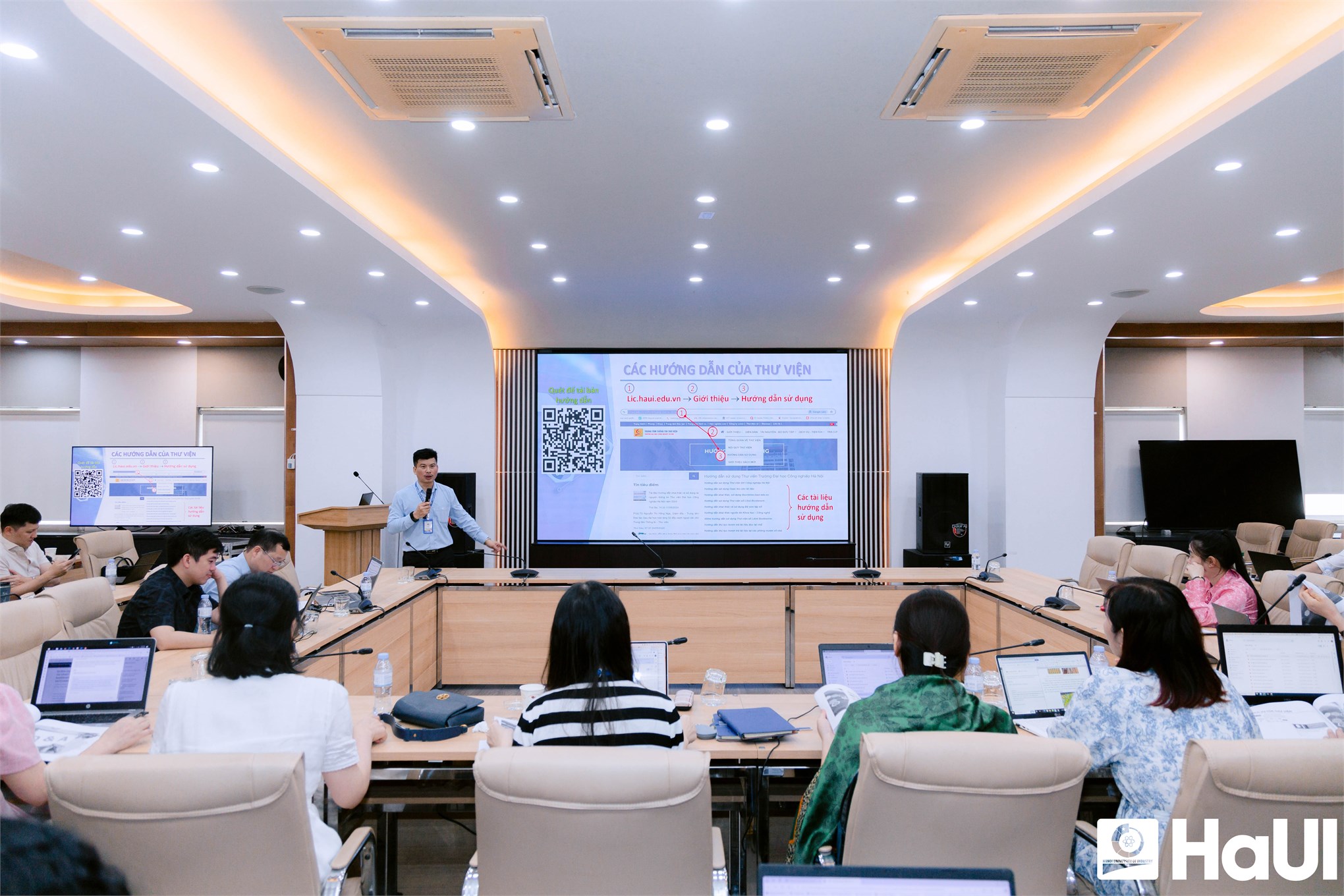 Nhằm trang bị cho đội ngũ cán bộ, giảng viên công cụ và phương pháp tiếp cận tri thức hiện đại, sáng ngày 26/4, Trung tâm Thông tin Thư viện, Trường Đại học Công nghiệp Hà Nội (HaUI) tổ chức buổi tập huấn “Khai thác tài nguyên thông tin phục vụ giảng dạy, học tập và nghiên cứu khoa học” với sự tham gia của gần 60 cán bộ, giảng viên trong toàn trường.
