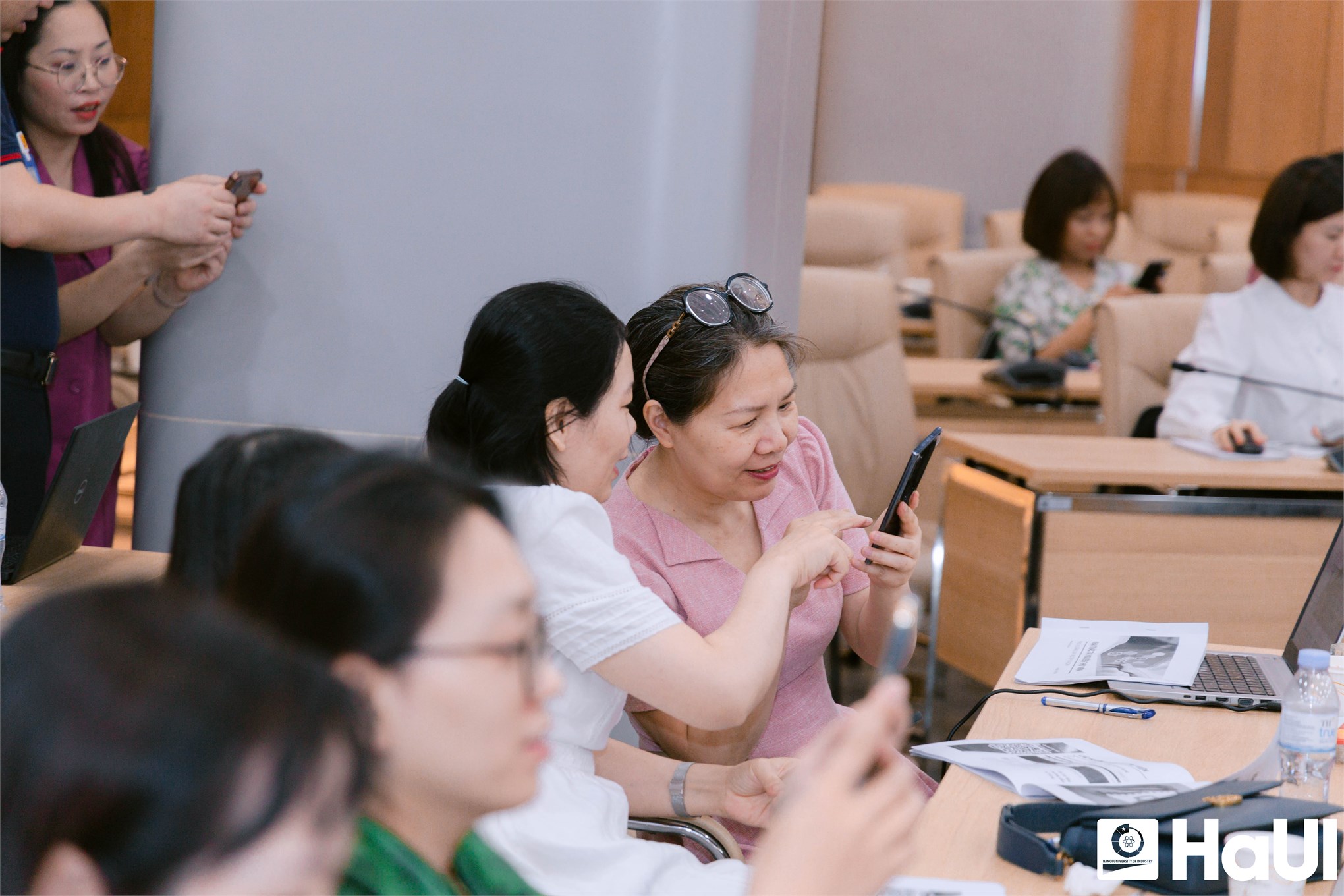 Không chỉ dừng lại ở phần lý thuyết, buổi tập huấn còn dành thời gian để giảng viên thực hành tìm kiếm trên hệ thống thư viện số của trường, trao đổi nhóm về cách ứng dụng thông tin vào bài giảng thực tế, từ đó nâng cao tính ứng dụng của kiến thức được chia sẻ.