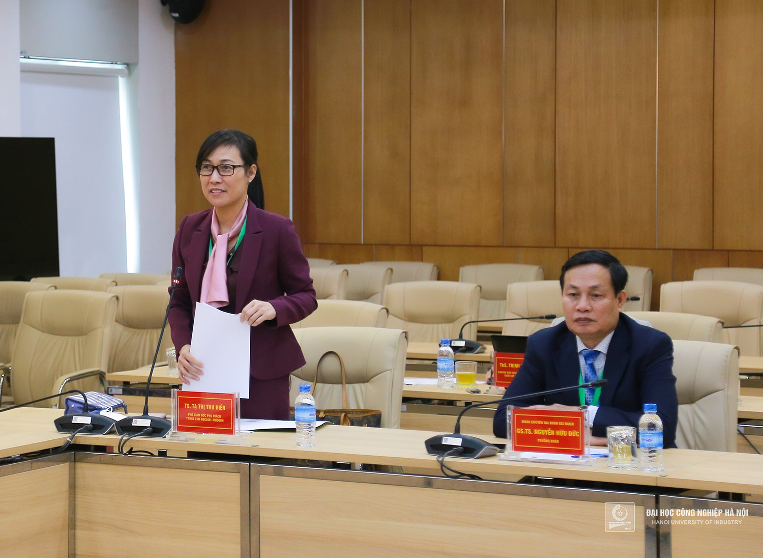 TS. Tạ Thị Thu Hiền - Phó Giám đốc phụ trách Trung tâm KĐCLGD, ĐHQGHN phát biểu tại buổi khảo sát
