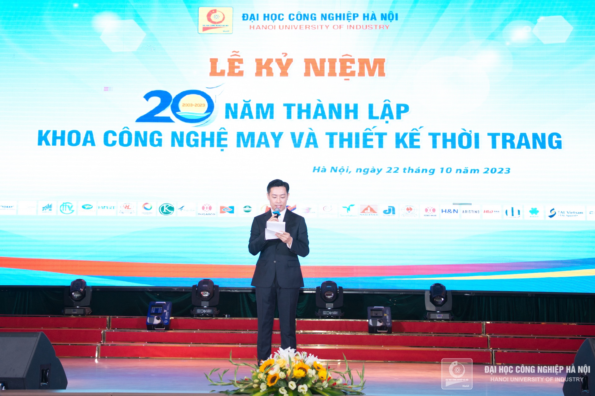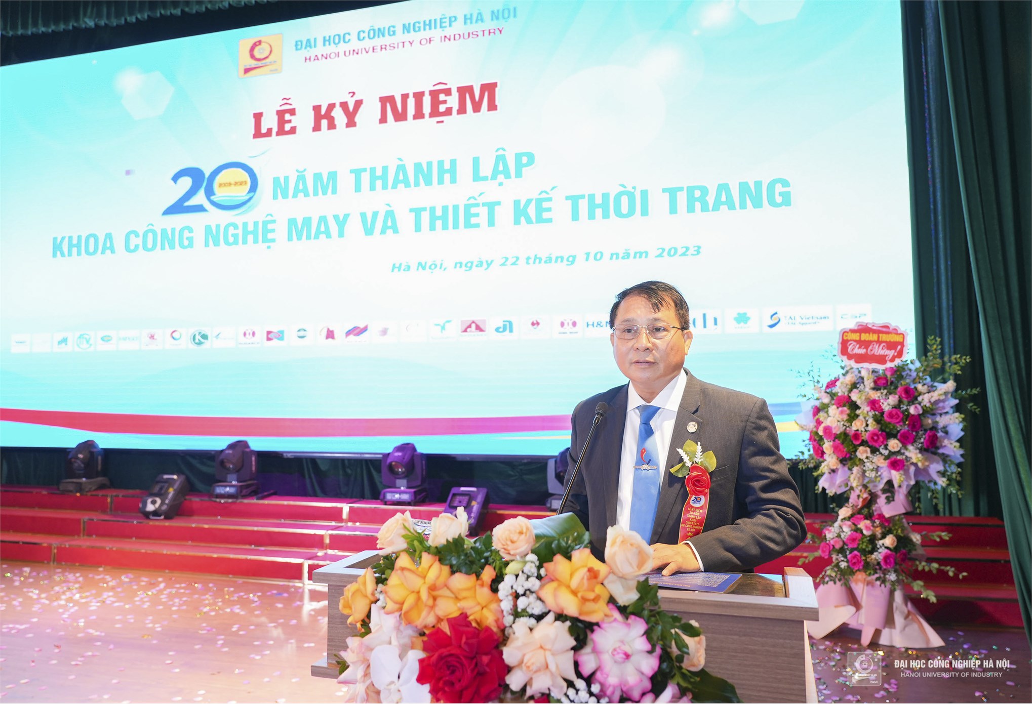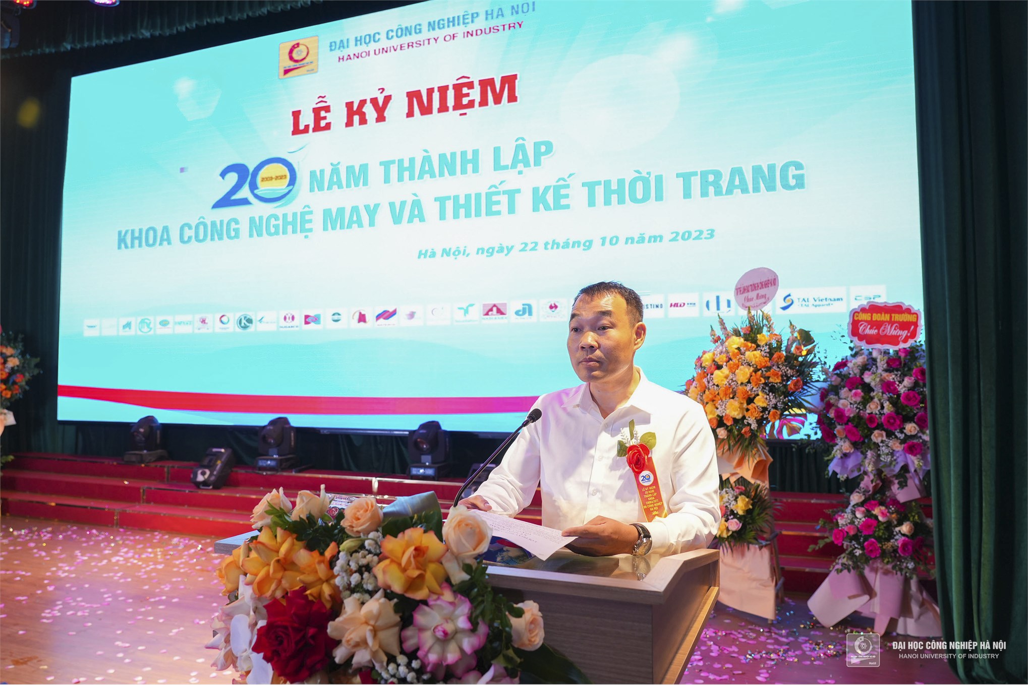 PGS.TS.Lê Hồng Quân – Bí thư Đảng ủy, Chủ tịch Hội đồng Trường ghi nhận và biểu dương những kết quả mà khoa Công nghệ May và Thiết kế thời trang đạt được trong hai thập kỷ qua, góp phần làm nên sắc màu của một Đại học Công nghiệp Hà Nội đa ngành, đa lĩnh vực