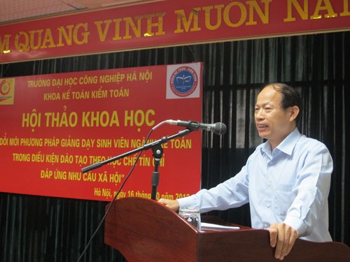 Chào mừng 115 năm ngày truyền thống nhà trường và đón nhận Huân chương Hồ Chí Minh, sáng ngày 16/10/2013, khoa Kế toán - Kiểm toán tổ chức hội thảo khoa học “Đổi mới phương pháp giảng dạy sinh viên chuyên ngành kế toán trong đào tạo theo học chế tín chỉ đáp ứng yêu cầu xã hội”.
