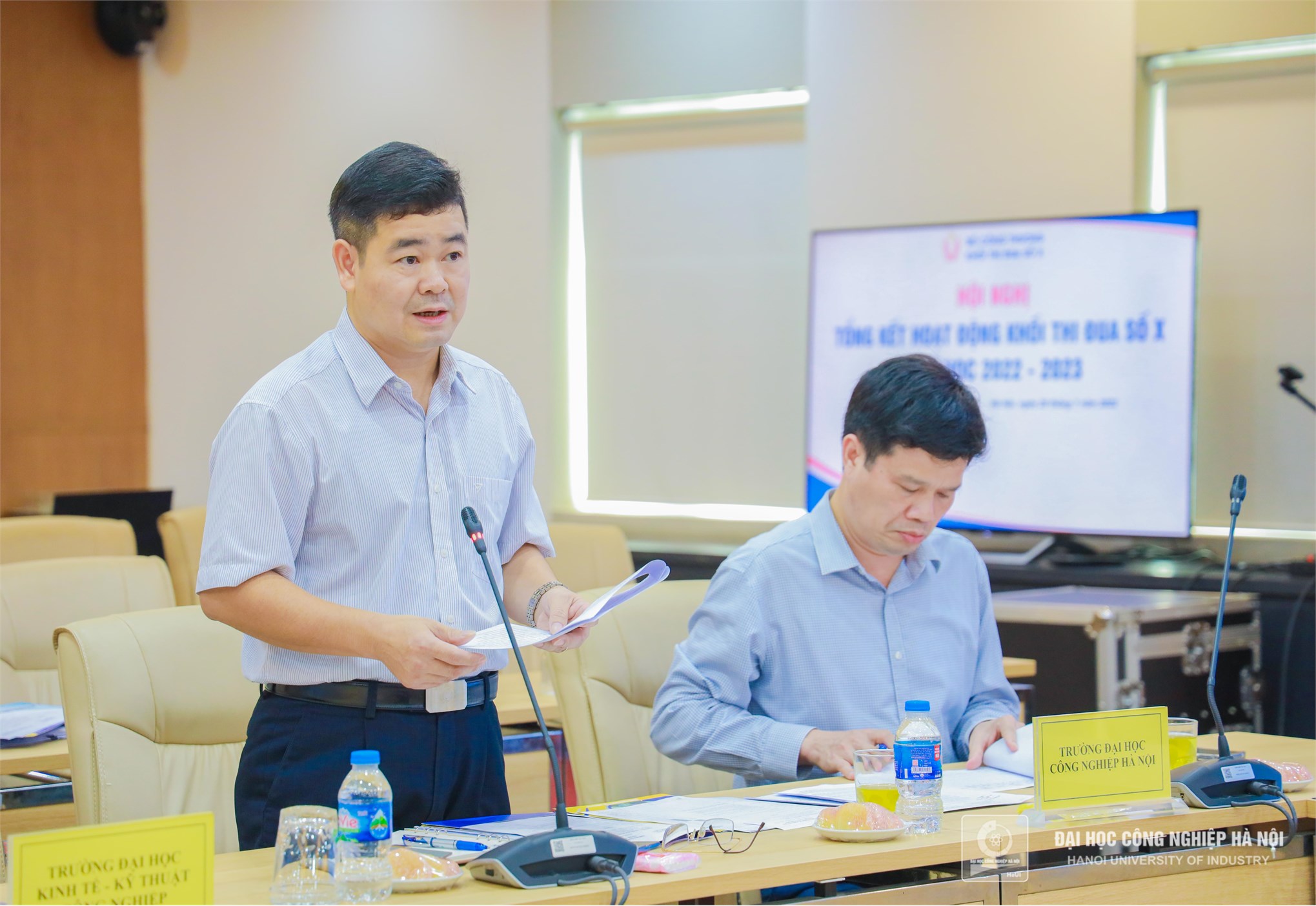 Tại Hội nghị, TS.Nguyễn Văn Thiện, Trưởng phòng Tổ chức Hành chính, Trường Đại học Công nghiệp Hà Nội đã trình bày tóm tắt Báo cáo Hoạt động của Khối thi đua số X, Bộ Công Thương năm học 2022 – 2023. Báo cáo tổng kết cho thấy, Khối đã triển khai các nhiệm vụ theo quy định và mục tiêu đề ra. Kết thúc năm học 2022- 2023, căn cứ tiêu chí đánh giá, chỉ tiêu đăng ký và kết quả thực hiện nhiệm vụ, Khối trưởng đã rà soát, tổng hợp điểm của các thành viên và đề nghị tặng danh hiệu thi đua và hình thức khen thưởng.