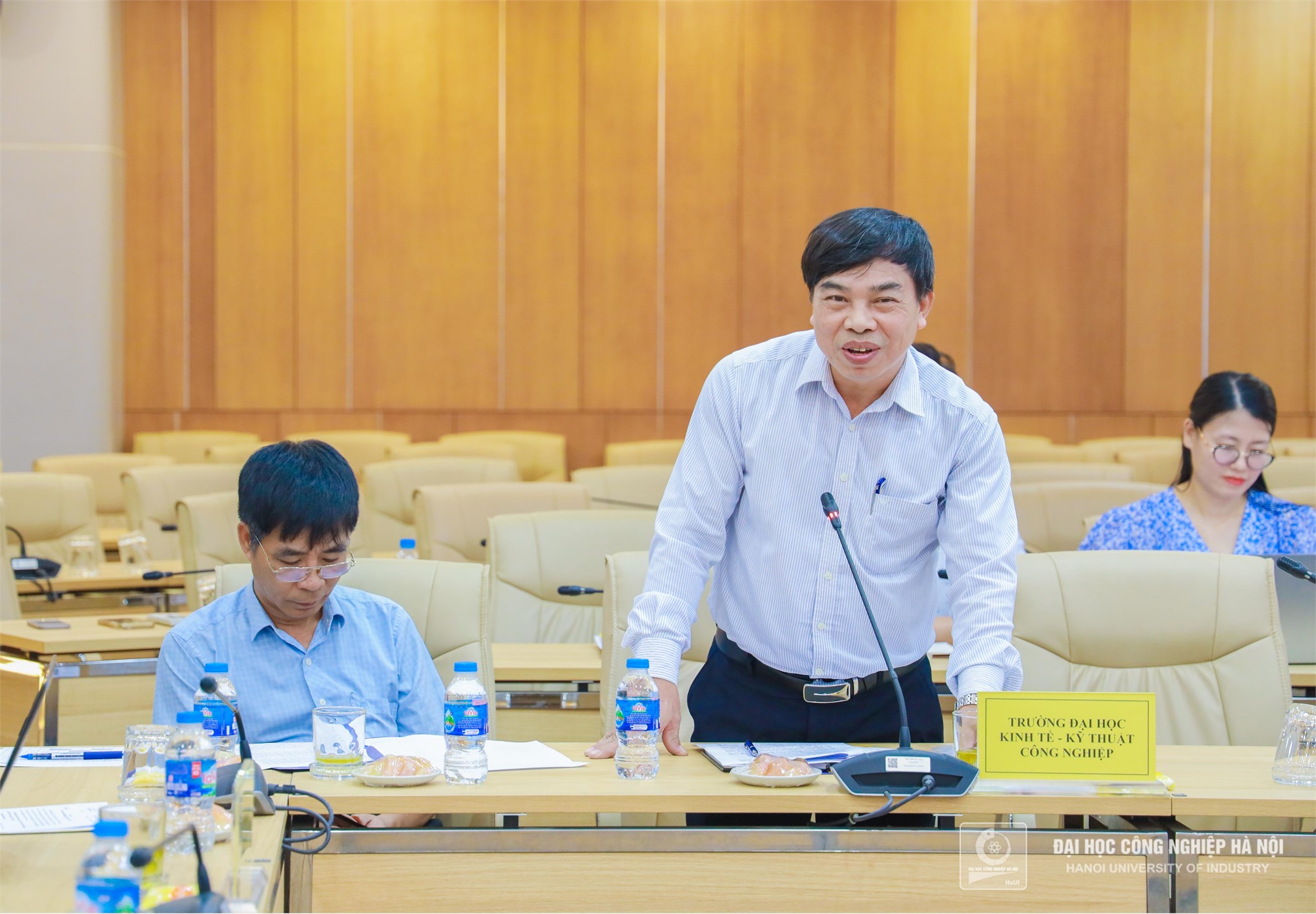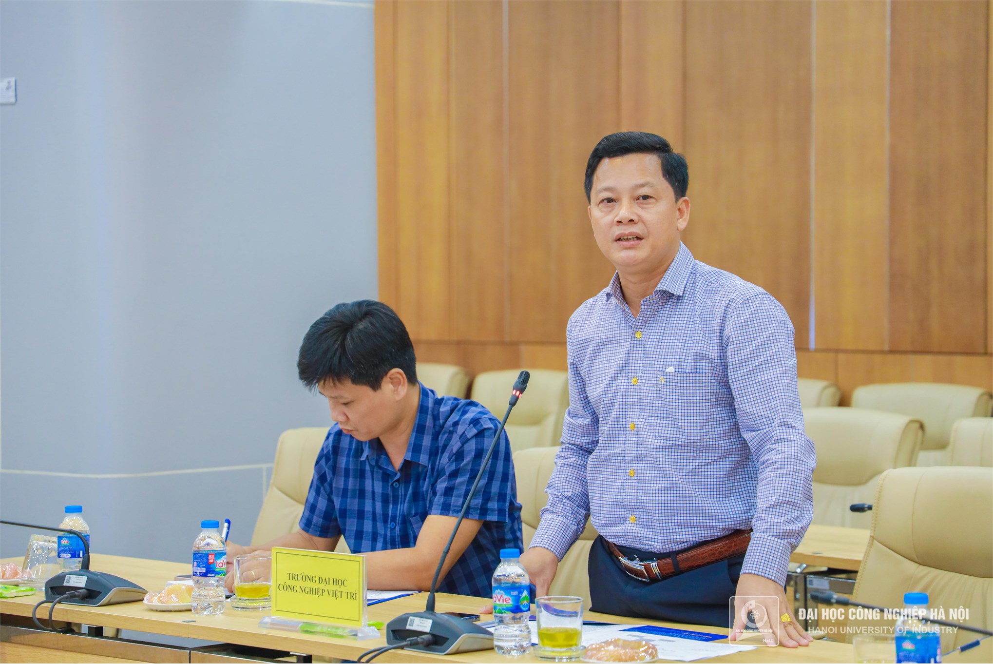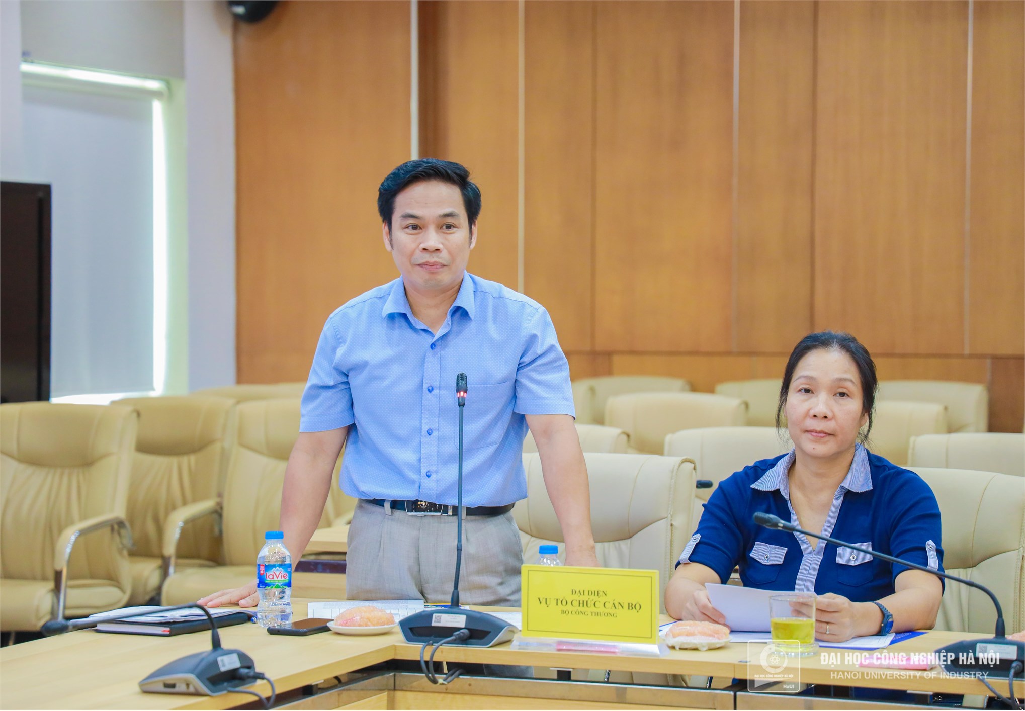 TS.Nguyễn Văn Thiện, Trưởng phòng Tổ chức Hành Chính, Trường Đại học Công nghiệp Hà Nội trình bày Báo cáo Hoạt động của Khối thi đua số X, Bộ Công Thương năm học 2022 – 2023