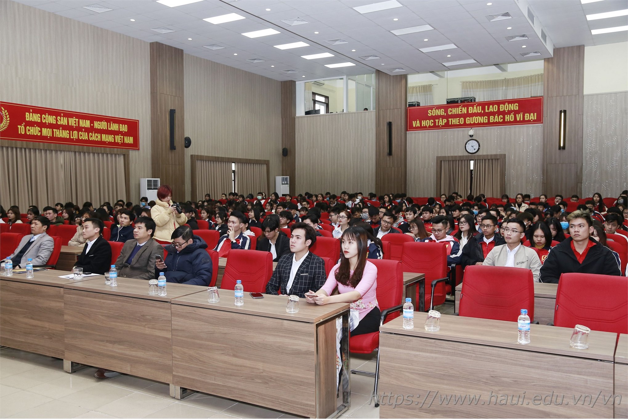 Tham dự buổi lễ, có thầy Trần Ngọc Khánh - Đảng ủy viên, Trưởng phòng Công tác sinh viên; đồng chí Trương Thị Thanh Hoài - Bí thư Đoàn trường; đồng chí Trần Tú Anh - Chủ tịch Hội Sinh viên trường cùng các đồng chí trong BCH Đoàn trường, BCH Hội sinh viên trường, BCH Liên chi Hội sinh viên và gần 300 sinh viên tiêu biểu.