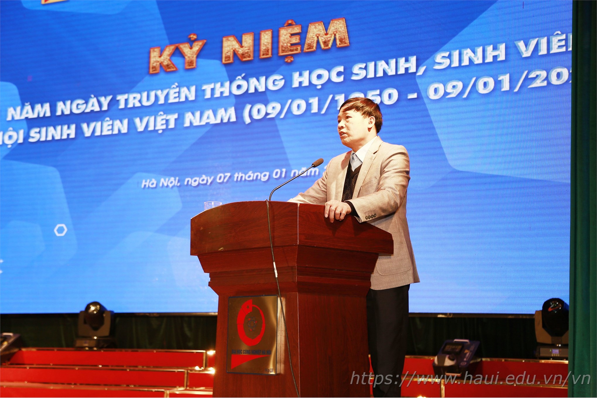 Chiều ngày 7/1/2020, Hội sinh viên trường Đại học Công nghiệp Hà Nội (ĐHCNHN) tổ chức Lễ kỷ niệm 71 năm ngày truyền thống học sinh sinh viên (HSSV) và Hội sinh viên Việt Nam. PGS.TS.Phạm Văn Bổng - Phó Hiệu trưởng nhà trường dự và phát biểu tại Lễ kỷ niệm.