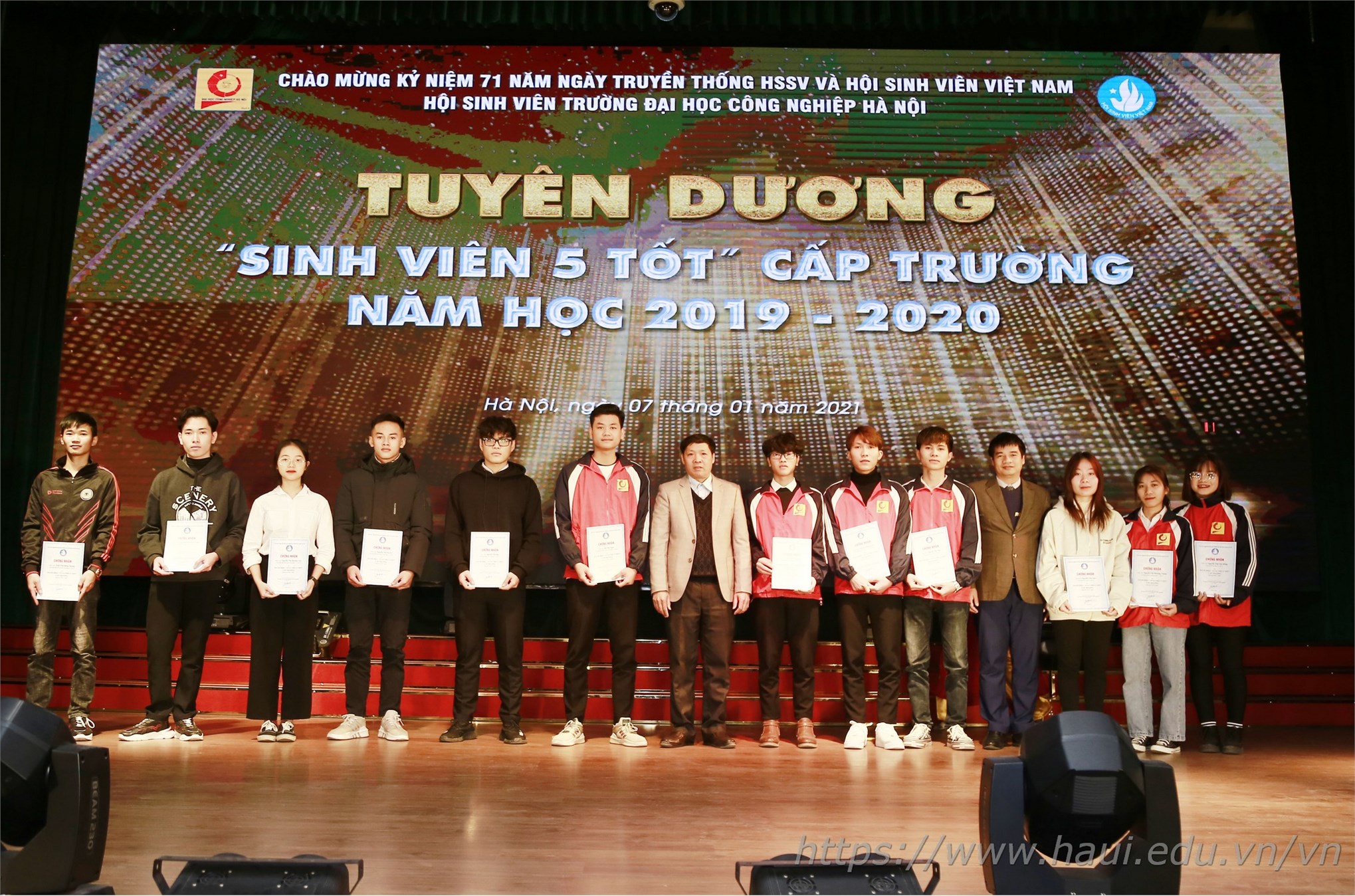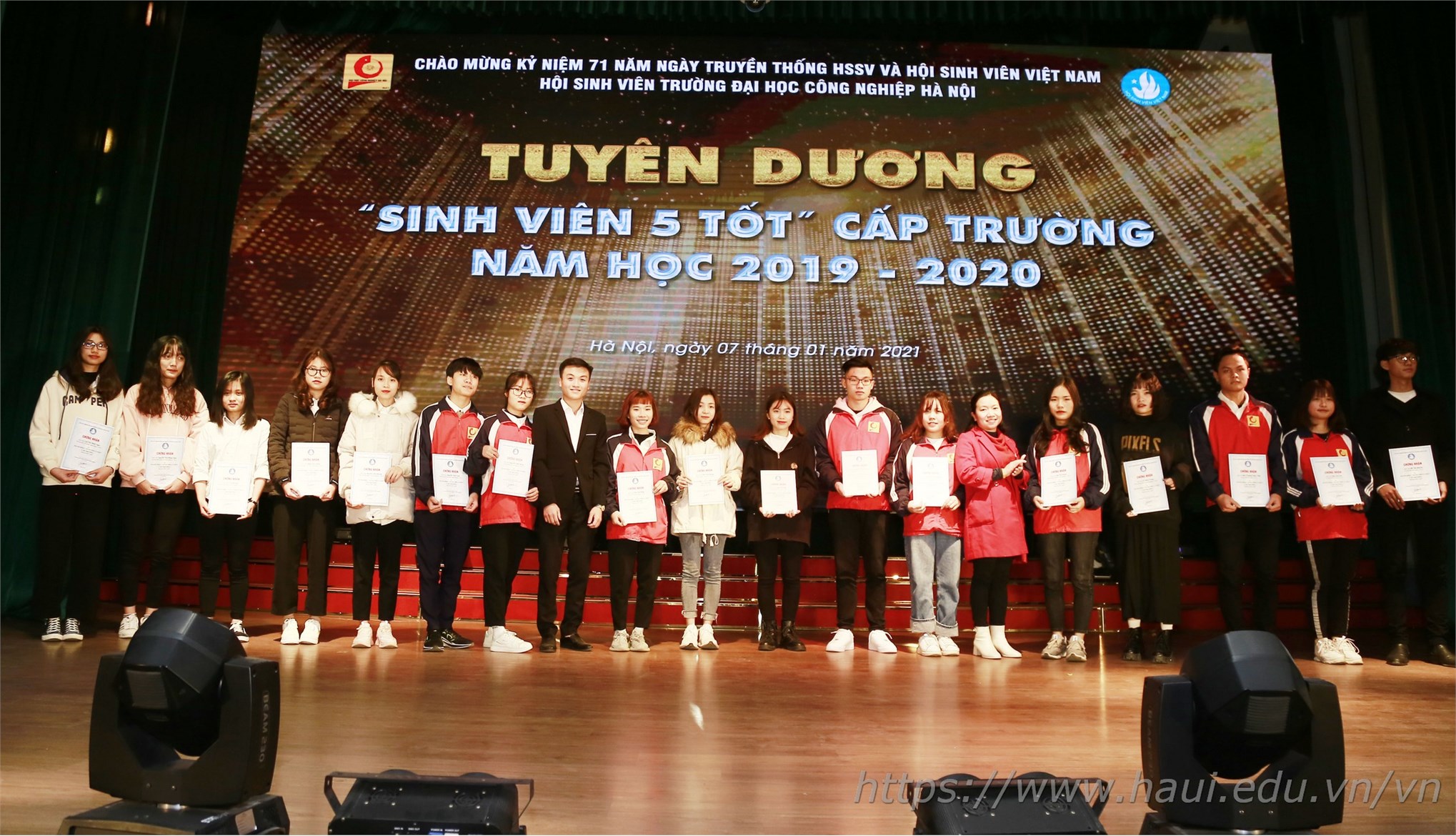 Tại Lễ kỷ niệm, 119 sinh viên được nhận Giấy chứng nhận “sinh viên 5 tốt” và 05 sinh viên được nhận giải cuộc thi videoclip”Tôi yêu Hội sinh viên” và cuộc thi “Tìm hiểu truyền thống HSSV và Hội SV Việt Nam”