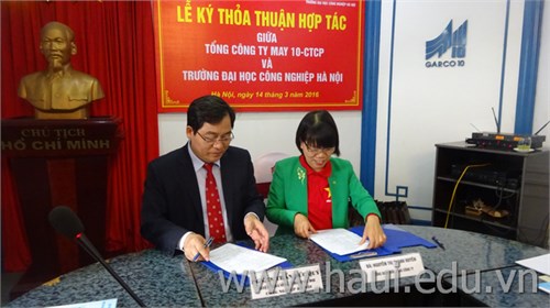 Trên cơ sở trao đổi về nhu cầu và khả năng đáp ứng của hai bên, chiều ngày 14/3/2016 tại trụ sở Tổng Công ty May 10 – Long Biên, Hà Nội đã diễn ra Lễ ký thỏa thuận hợp tác giữa Trường Đại học Công nghiệp Hà Nội và công ty May 10.