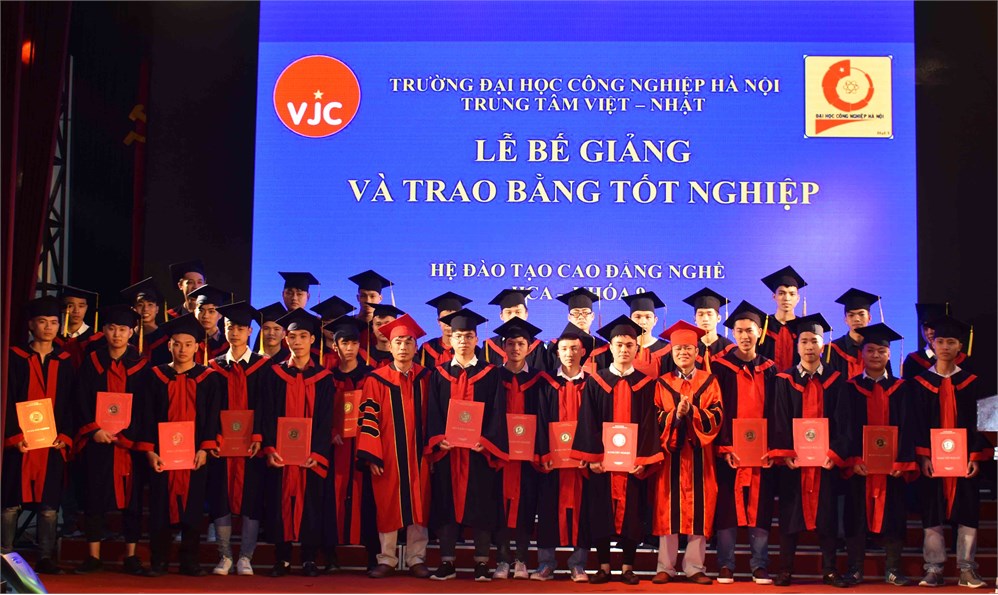 Sáng ngày 19/10/2018, Trung tâm Việt Nhật – Đại học Công nghiệp Hà Nội đã tổ chức Lễ bế giảng và trao bằng tốt nghiệp cho 231 sinh viên hệ Cao đẳng nghề khóa 9. TS. Nguyễn Xuân Chung – Giám đốc Trung tâm Việt Nhật chủ trì buổi lễ.