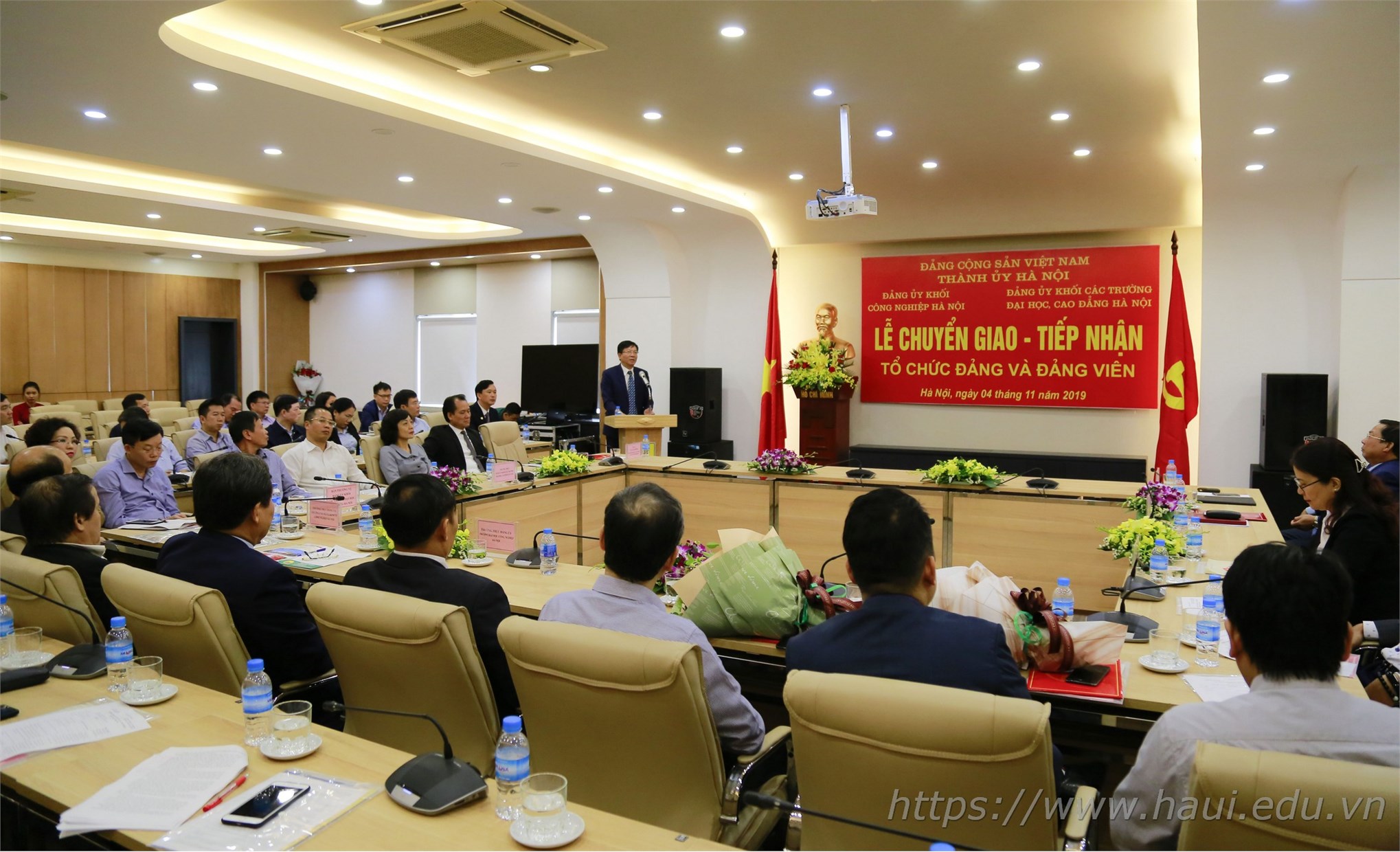 Lễ chuyển giao - tiếp nhận tổ chức Đảng và Đảng viên được thực hiện theo Quyết định số 3571-QĐ/ĐUK, ngày 30 tháng 10 năm 2019 của Đảng ủy Khối các trường đại học, cao đẳng Hà Nội. Theo đó, chuyển giao 04 tổ chức cơ sở Đảng và 1.139 đảng viên từ trực thuộc Đảng ủy Khối Công nghiệp Hà Nội về trực thuộc Đảng ủy Khối các trường đại học, cao đẳng Hà Nội, gồm các đơn vị sau:
