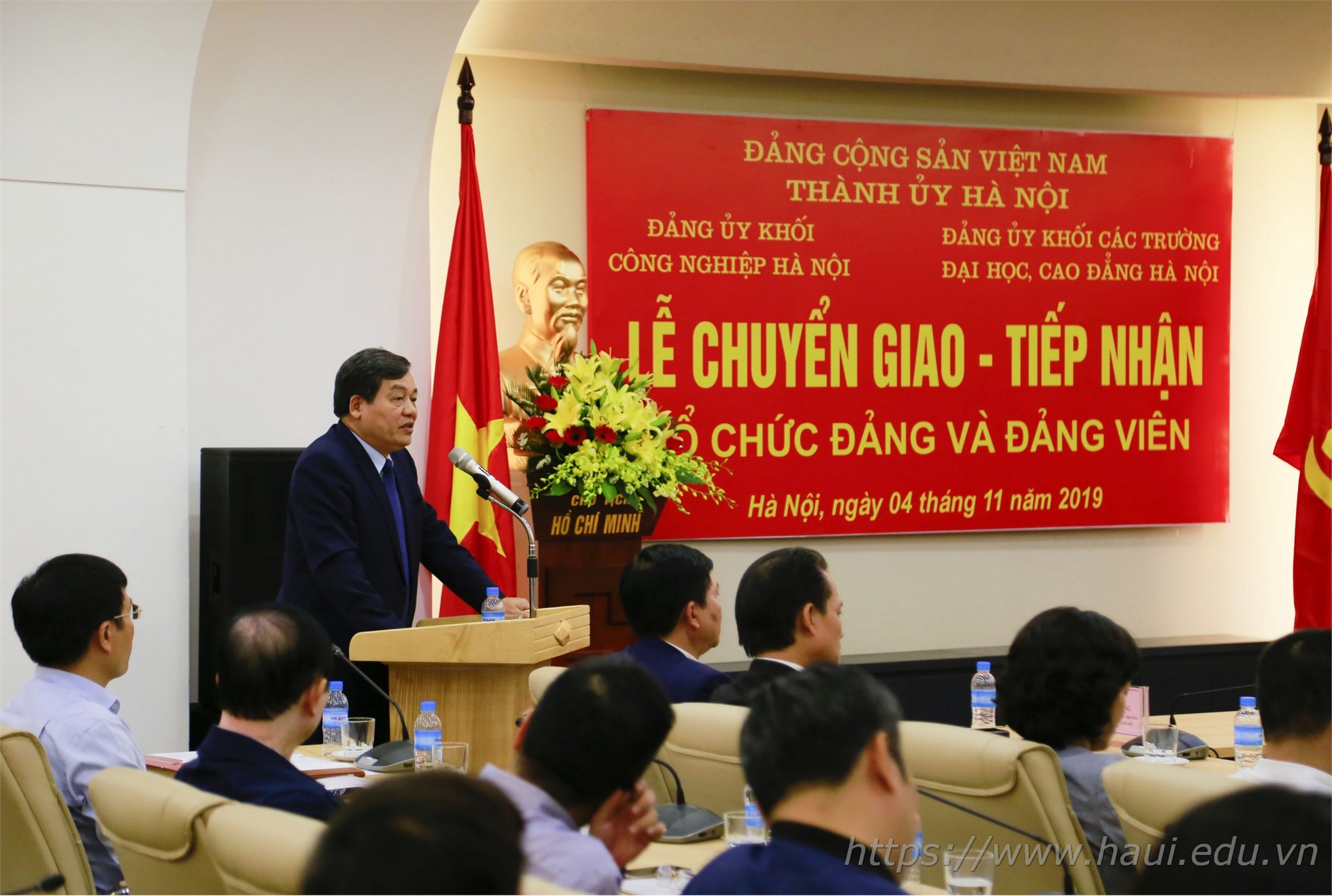Sáng ngày 04/11/2019, tại trường Đại học Công nghiệp Hà Nội, Đảng ủy Khối Công nghiệp Hà Nội và Đảng ủy Khối các trường Đại học, Cao đẳng Hà Nội đã phối hợp tổ chức Lễ chuyển giao, tiếp nhận tổ chức cơ sở Đảng và Đảng viên đối với 04 trường đại học, cao đẳng từ Đảng ủy Khối Công nghiệp Hà Nội về Đảng ủy Khối các trường Đại học, Cao đẳng Hà Nội.