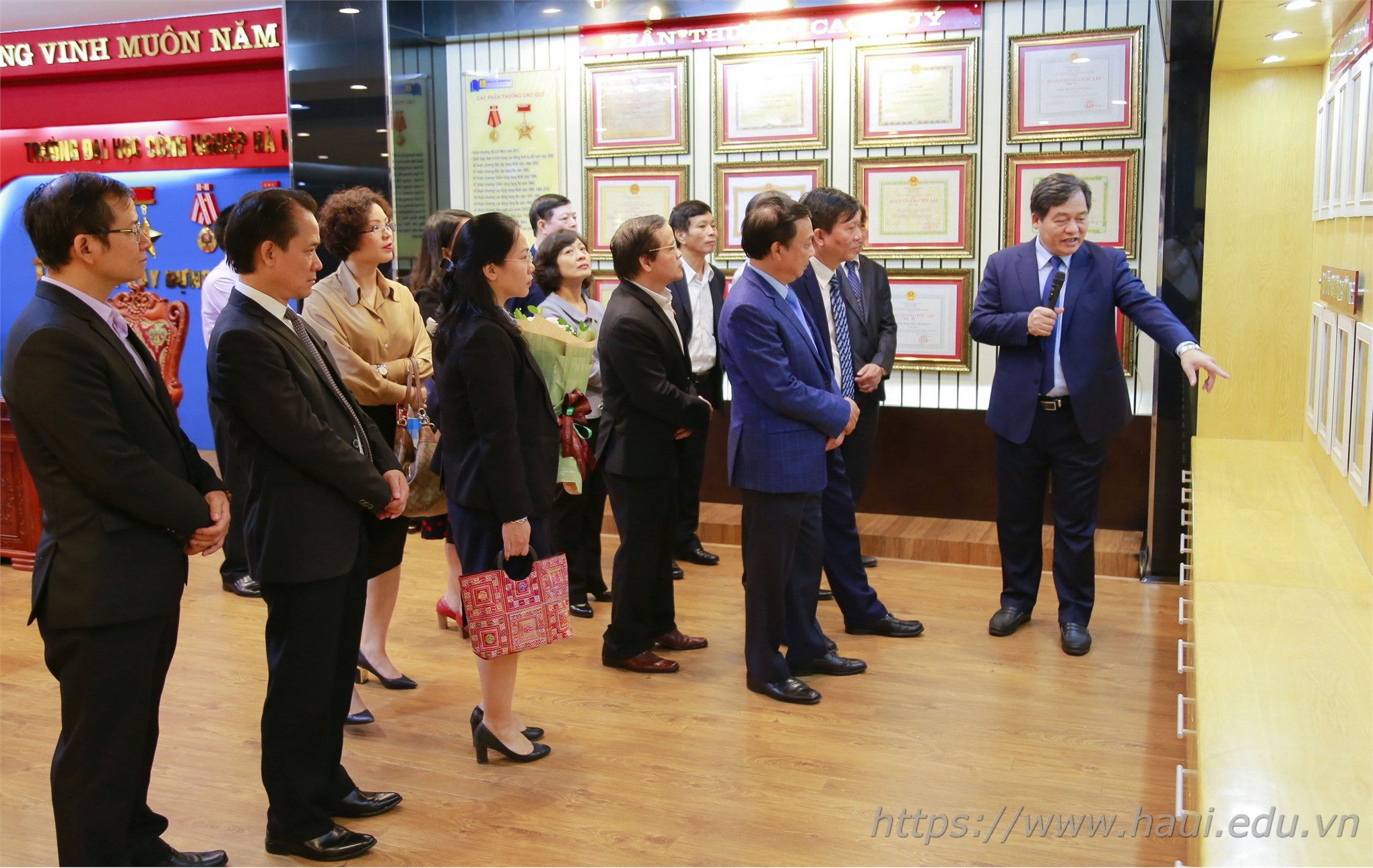 Đại diện Đảng ủy Khối các trường đại học, cao đẳng Hà Nội: đồng chí Vũ Tuấn Dũng - Thành ủy viên, Bí thư Đảng ủy Khối các trường đại học, cao đẳng Hà Nội, các đ/c Phó Bí thư, các ủy viên BTV, trưởng các Ban đảng, chánh VP Đảng ủy khối.