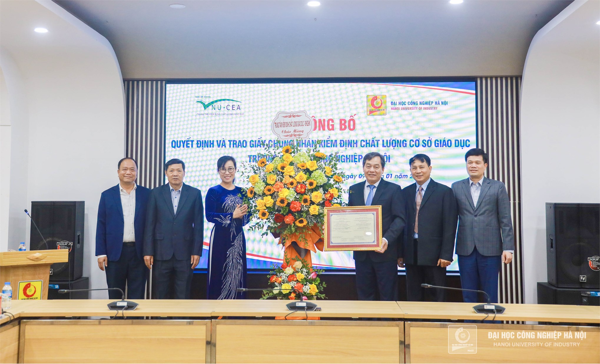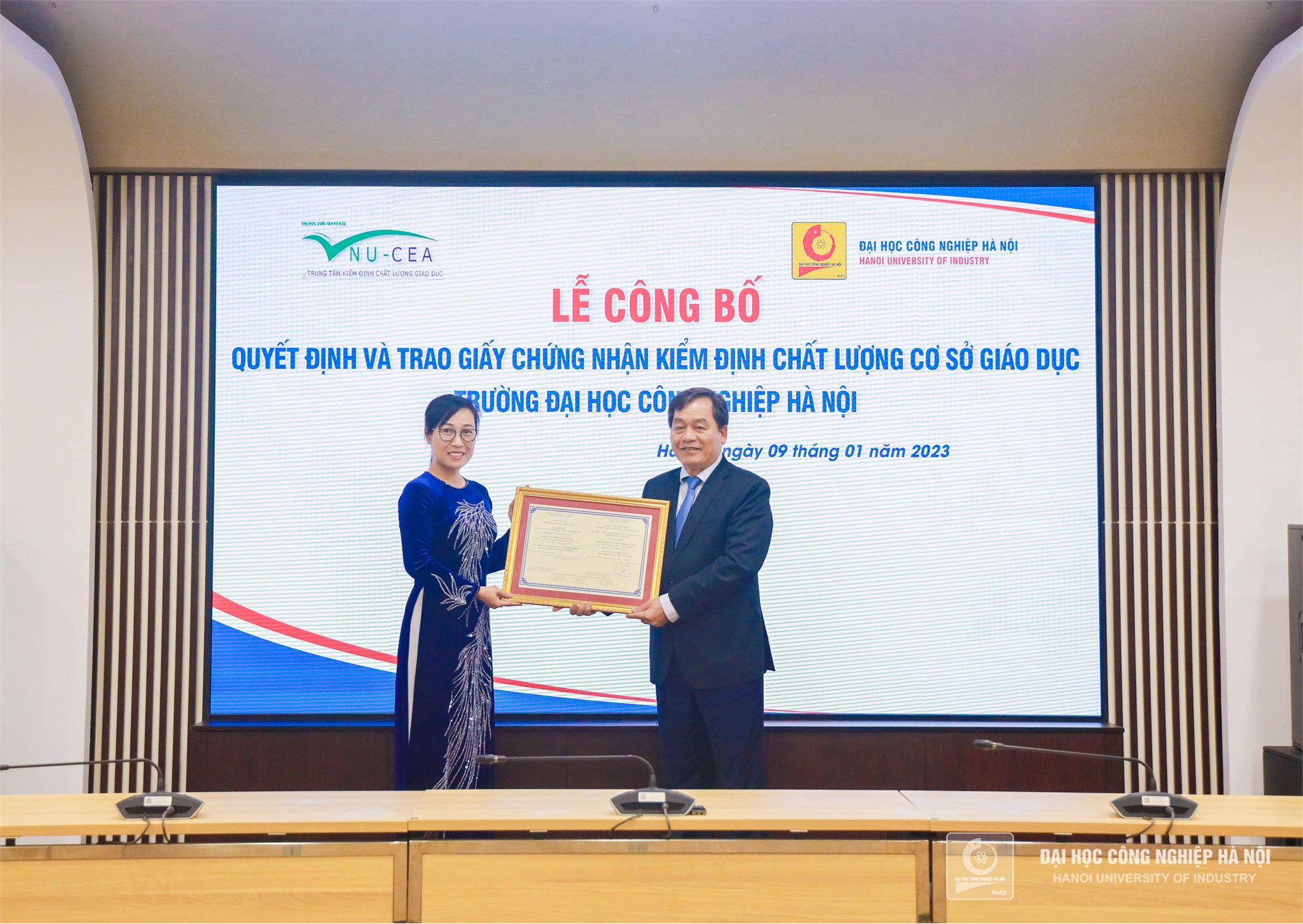 Ngày 09/01/2023, Trường Đại học Công nghiệp Hà Nội long trọng tổ chức Lễ công bố quyết định và đón nhận Giấy chứng nhận Kiểm định chất lượng cơ sở giáo dục theo quy định của Bộ Giáo dục Đào tạo.