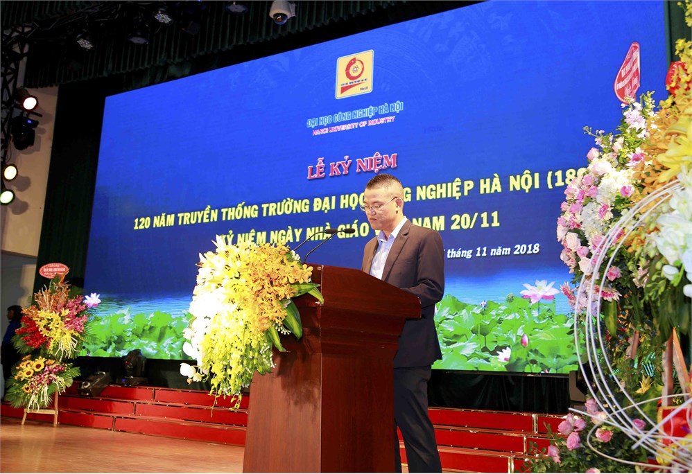 Thay mặt cán bộ, giảng viên, học viên, học sinh-sinh viên nhà trường, NGND.PGS.TS. Trần Đức Quý – Hiệu trưởng nhà trường phát biểu trân trọng chào đón và cảm ơn các đồng chí lãnh đạo các Bộ, Ban, Ngành, các vị khách quý trong và ngoài nước, các thế hệ cán bộ, giảng viên, học viên, học sinh-sinh viên đã về chung vui với Nhà trường. Thầy Hiệu trưởng dành thời gian ôn lại lịch sử hình thành, phát triển của nhà trường; tổng kết các kết quả đạt được của Đại học Công nghiệp Hà Nội trong hành trình 120 năm; các định hướng, chiến lược phát triển Trường giai đoạn 2018-2025 và kêu gọi các thầy cô giáo, các em học viên, sinh viên Nhà trường cùng đoàn kết, giữ vững truyền thống, đổi mới, sáng tạo cùng chung sức tạo dựng thương hiệu Đại học Công nghiệp Hà Nội, vững bước phát triển trên một tầm cao mới.