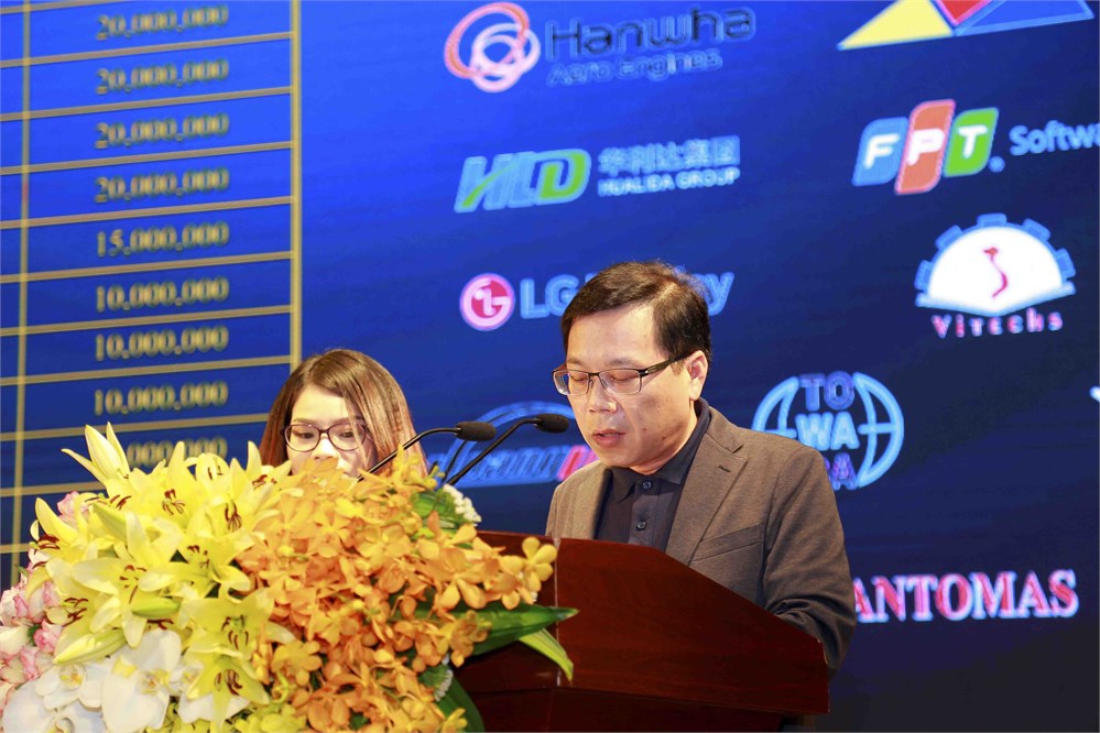 Đại diện cho các doanh nghiệp hợp tác, tài trợ và đồng hành cùng ĐHCNHN trong nhiều năm qua, ông Châu Nghĩa Văn – Giám đốc nhân sự Tập đoàn Khoa học Kỹ thuật Hồng Hải, đã phát biểu và chúc mừng nhà trường.
