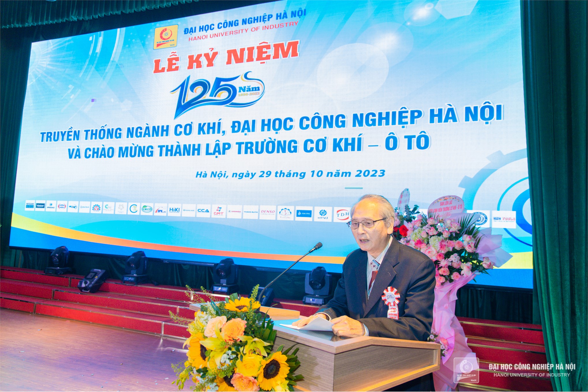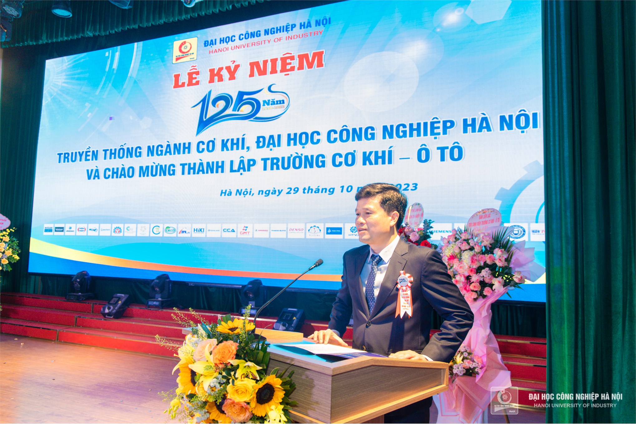 TS.Kiều Xuân Thực – Hiệu trưởng Đại học Công nghiệp Hà Nội phát biểu chúc mừng, biểu dương tinh thần đoàn kết, sự nỗ lực phấn đấu và những thành quả đáng tự hào của ngành Cơ khí, Đại học Công nghiệp Hà Nội trong 125 năm qua