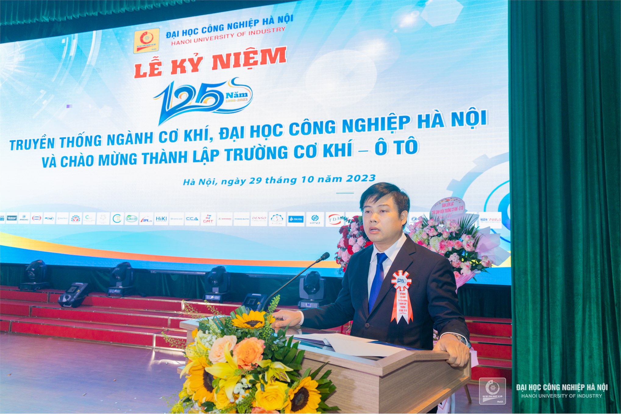 Đại diện cho Ngành Cơ khí và thay mặt cho lãnh đạo Trường Cơ khí – Ô tô (HaUI), PGS.TS.Hoàng Tiến Dũng chia sẻ và bày tỏ quyết tâm: Mái nhà chung Cơ khí đã chính thức tròn 125 năm tuổi, tự hào về những giá trị đạt được, đã tạo dựng tin yêu, hy vọng, nhiệt huyết với sứ mệnh đã và đang được thực hiện. Tất cả luôn vững tin vào ngọn đuốc thắp sáng hành trình đang và sẽ đi, để viết tiếp những trang vàng truyền thống của Đại học Công nghiệp Hà Nội.