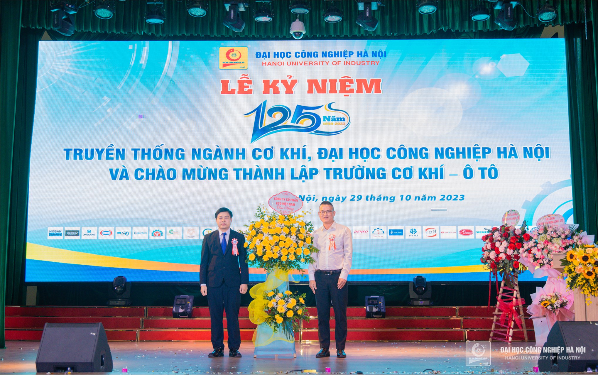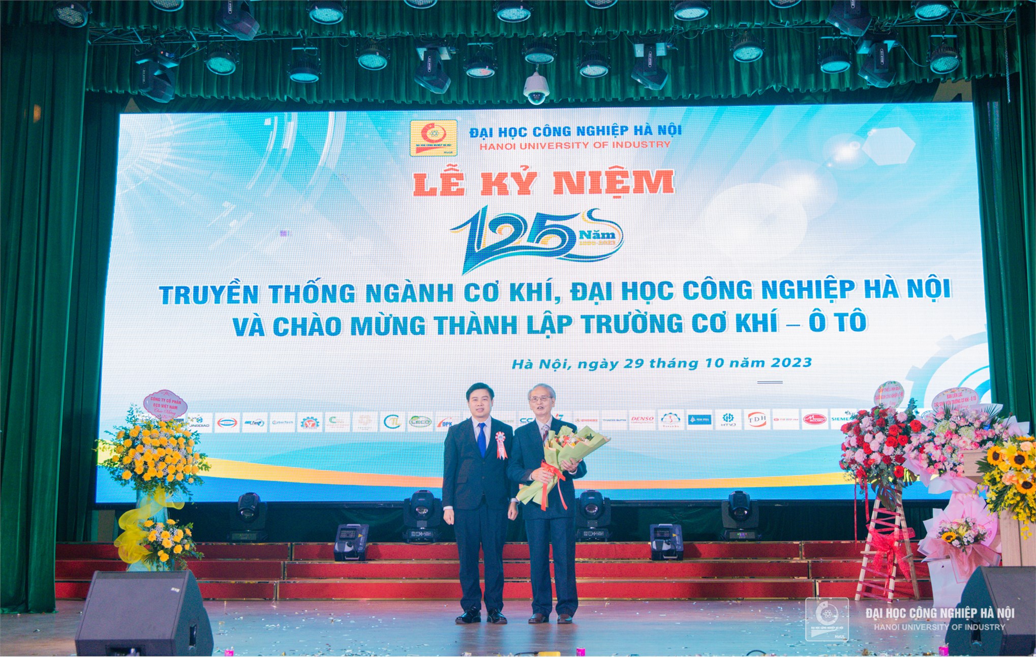 TS.Kiều Xuân Thực – Hiệu trưởng HaUI thay mặt lãnh đạo Nhà trường tặng hoa chúc mừng 125 năm truyền thống ngành Cơ khí, Đại học Công nghiệp Hà Nội