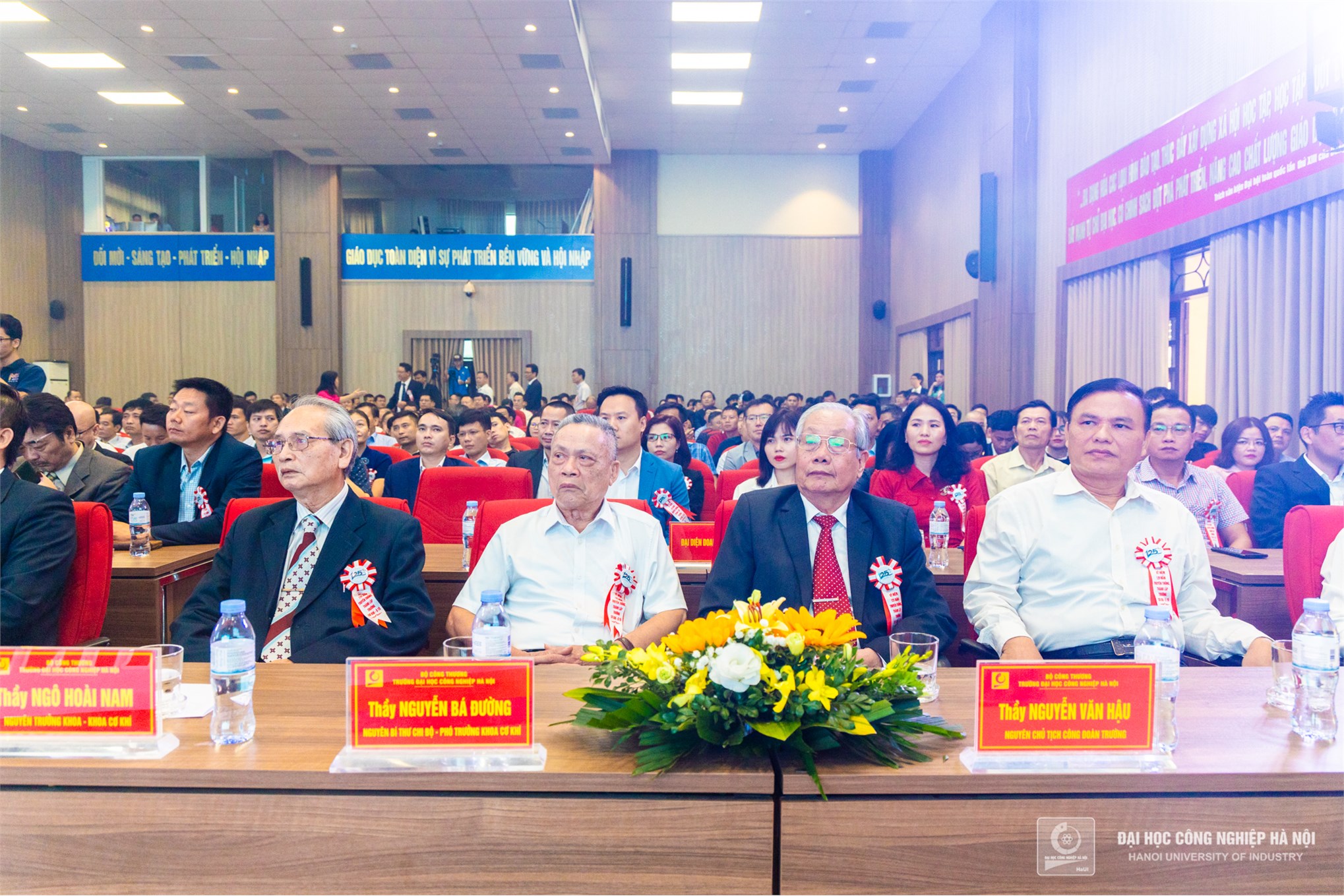 Buổi Lễ diễn ra trang trọng, ngập tràn niềm vui, phấn khởi và tự hào, với sự tham dự của các đại biểu là lãnh đạo, nguyên là lãnh đạo Đại học Công nghiệp Hà Nội; lãnh đạo, nguyên lãnh đạo các đơn vị ngành Cơ khí thuộc Đại học Công nghiệp Hà Nội; đại diện các trường đại học, học viện, viện nghiên cứu, các cơ quan, tổ chức, doanh nghiệp trong nước và nước ngoài; các thế hệ cán bộ, giảng viên, học viên, sinh viên qua các thời kỳ; đại diện các đơn vị thuộc, trực thuộc Đại học Công nghiệp Hà Nội.