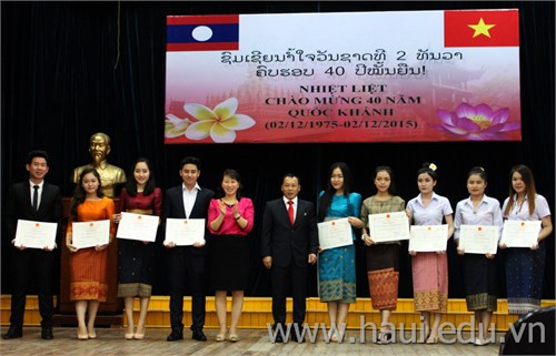 Nhân dịp này, ghi nhận những nỗ lực học tập và rèn luyện của các lưu học sinh Lào đang học tập tại trường, Hiệu trưởng Nhà trường đã quyết định tặng bằng khen cho các sinh viên xuất sắc trong năm học vừa qua, động viên các em tiếp tục phấn đấu, rèn luyện học tập, sau này trở về xây dựng quê hương đất nước.