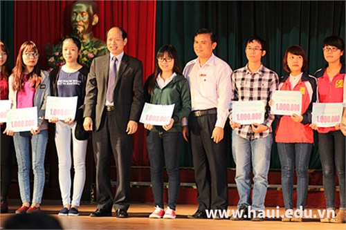 Đại diện Ban vận động quỹ, TS. Hà Xuân Quang - Phó Hiệu trưởng Nhà trường, Trưởng ban vận động quỹ cảm ơn sự giúp đỡ, hỗ trợ, ủng hộ của các nhà hảo tâm là các doanh nghiệp, công ty, tổ chức xã hội và tập thể công chức, viên chức, học sinh, sinh viên Nhà trường đã luôn đồng hành với Quỹ trong suốt thời gian qua. 299 em sinh viên là những tấm gương tiêu biểu trong phong trào học tập tốt, rèn luyện tốt, nghiên cứu khoa học, vượt khó vươn lên của năm học 2013 - 2014 đã được nhận học bổng trong đợt trao tặng này.