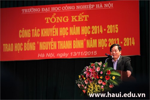 Thực hiện kế hoạch đào tạo năm 2015, sáng ngày 13/11/2015 trường Đại học Công nghiệp Hà Nội tổ chức buổi Lễ trao học bổng “Nguyễn Thanh Bình”, đồng thời tổng kết và đưa ra phương hướng hoạt động trong năm học mới 2015 - 2016. Dự buổi tổng kết có đại diện gia đình Bác Nguyễn Thanh Bình, các doanh nghiệp, tổ chức, công ty, PGS.TS. Trần Đức Quý - Hiệu trưởng Nhà trường, Ban vận động quỹ khuyến học cùng giảng viên, học sinh, sinh viên Nhà trường.