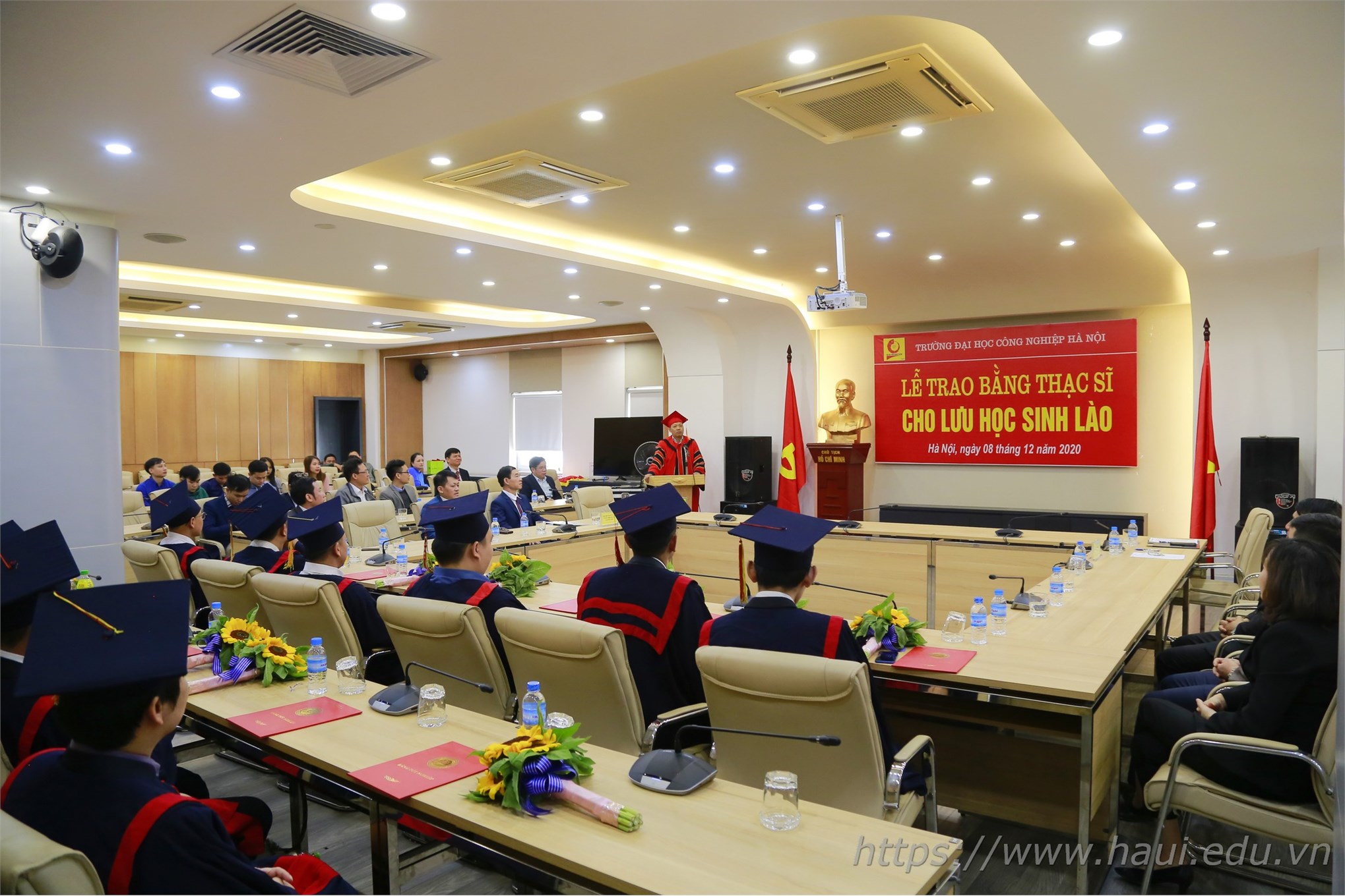 Sáng ngày 08/12/2020, Đại học Công nghiệp Hà Nội tổ chức Lễ trao bằng Thạc sĩ cho 12 lưu học sinh Lào.