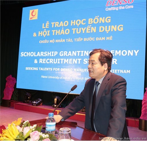 Phát biểu tại buổi lễ, PGS.TS. Trần Đức Quý –Hiệu trưởng Nhà trường cảm ơn sự đồng hành, quan tâm và hỗ trợ của DENSO Việt Nam dành cho trường, đồng thời thầy Hiệu trưởng cũng hy vọng sự hợp tác bền chặt giữa nhà trường và DENSO Việt Nam sẽ tiếp tục được duy trì, củng cố và đạt nhiều kết quả tốt đẹp.