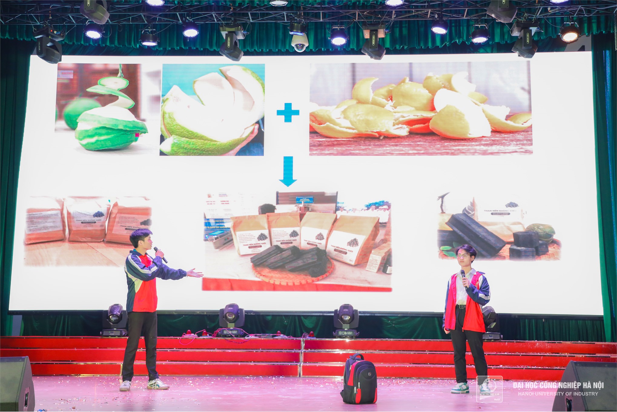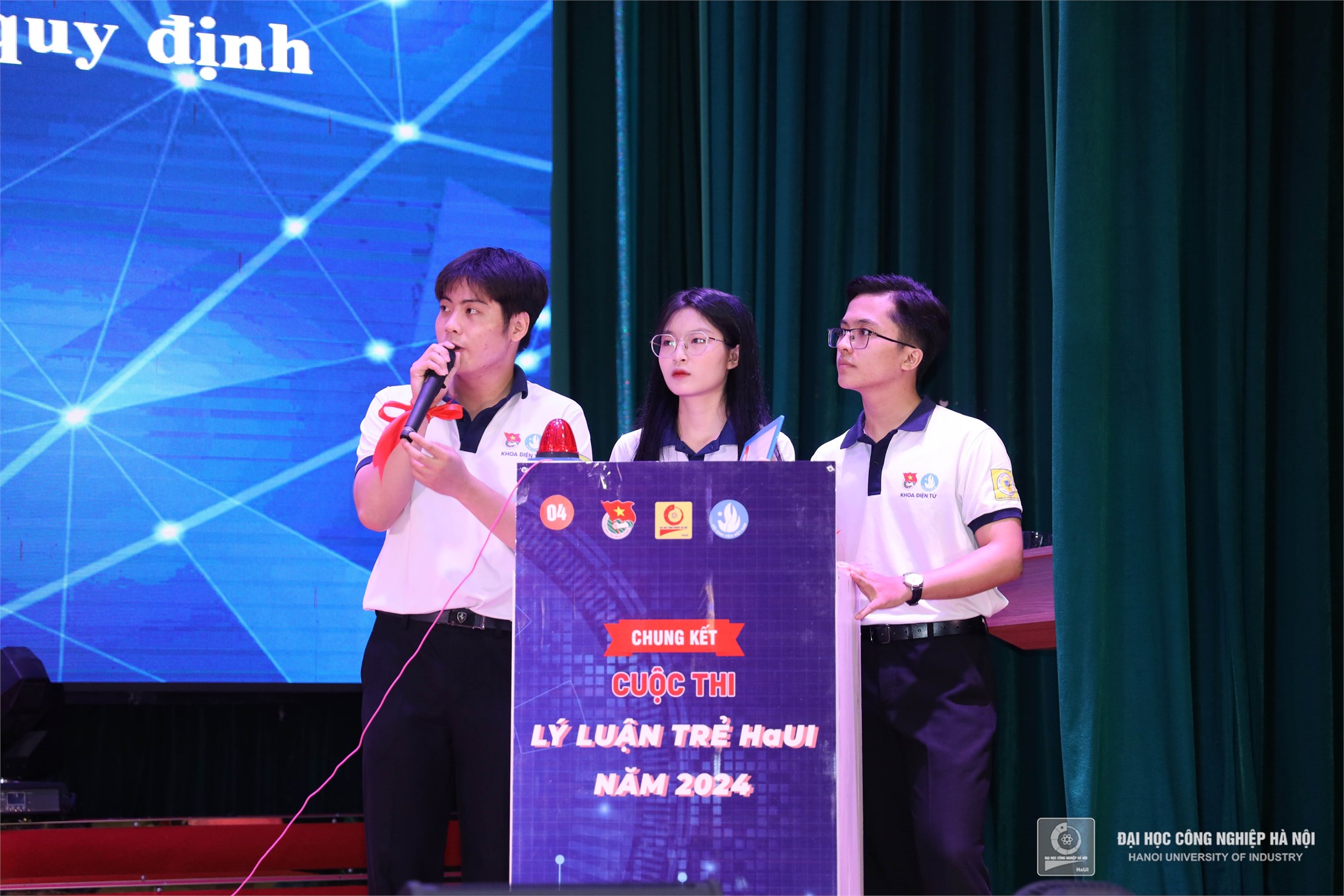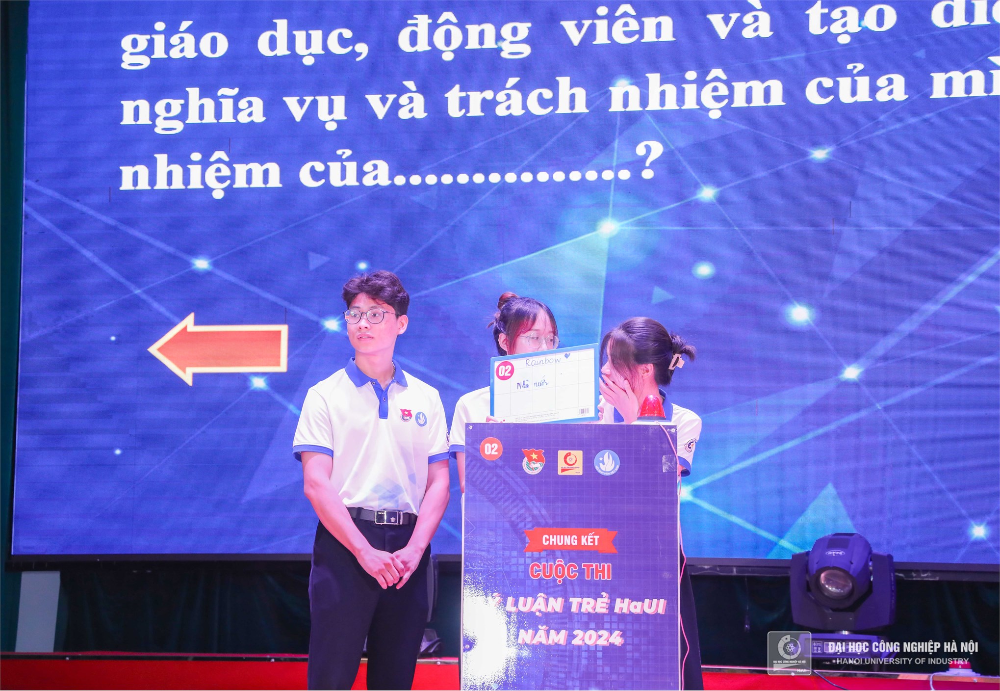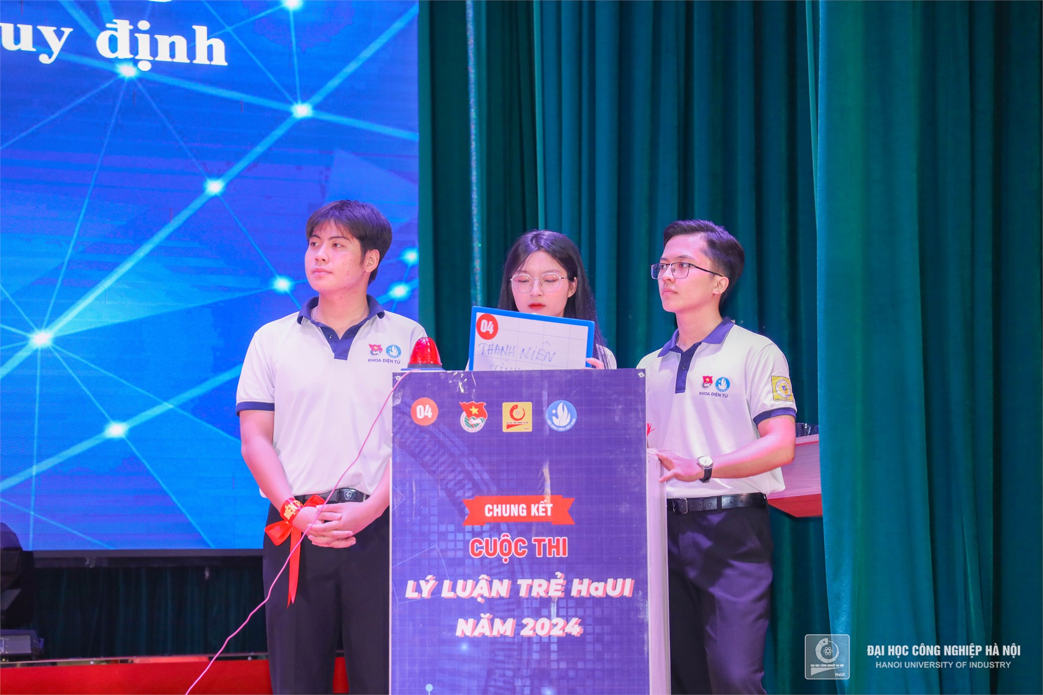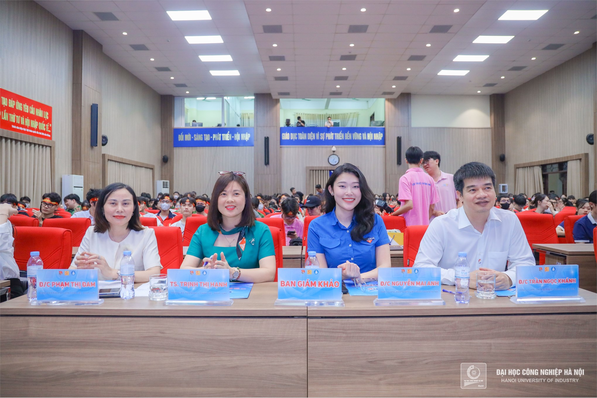 Đồng chí Đỗ Minh Hiền – UV BCH Thành đoàn, Đảng ủy viên, Bí thư Đoàn thanh niên Trường Đại học Công nghiệp Hà Nội và TS. Phạm Thị Thu Hương – Phó Trưởng khoa Khoa Lý luận chính trị - Pháp luật Trao giải Ba cho đội Sao Sáng - Liên chi đoàn Khoa Công nghệ May và Thiết kế thời trang; đội thi Rainbow - Liên chi đoàn Khoa Công nghệ Hóa