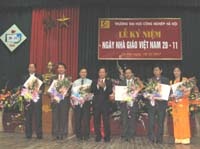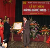 Thầy Phó Hiệu trưởng Trần Hữu Thể và thầy Trưởng khoa Điện tử Phạm Xuân Khánh được Thủ tướng Chính phủ tặng bằng khen vì đã có thành tích xuất sắc trong công tác xây dựng CNXH và bảo vệ tổ quốc.