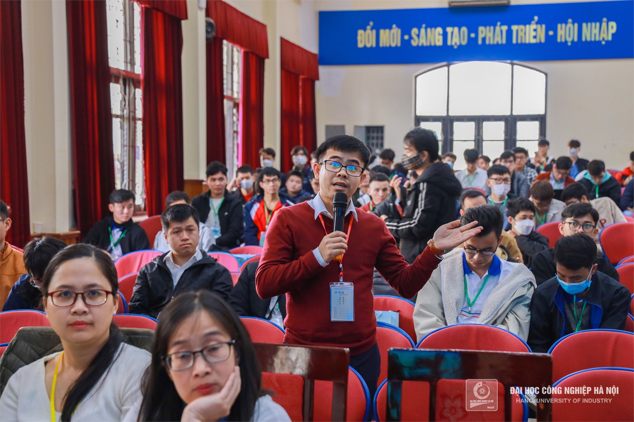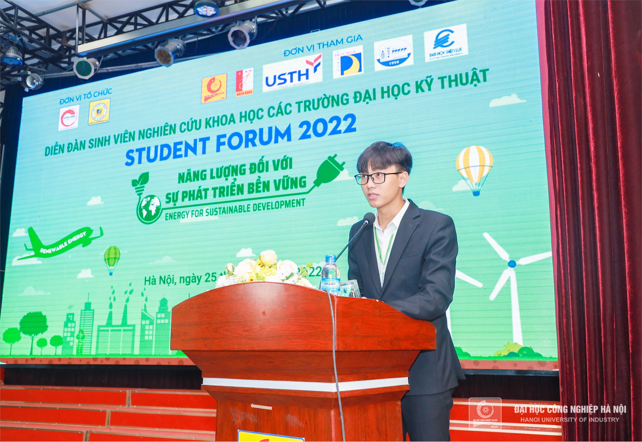 Nguyễn Văn Tân, sinh viên Trường Đại học Công nghiệp Hà Nội phát biểu tại Diễn đàn