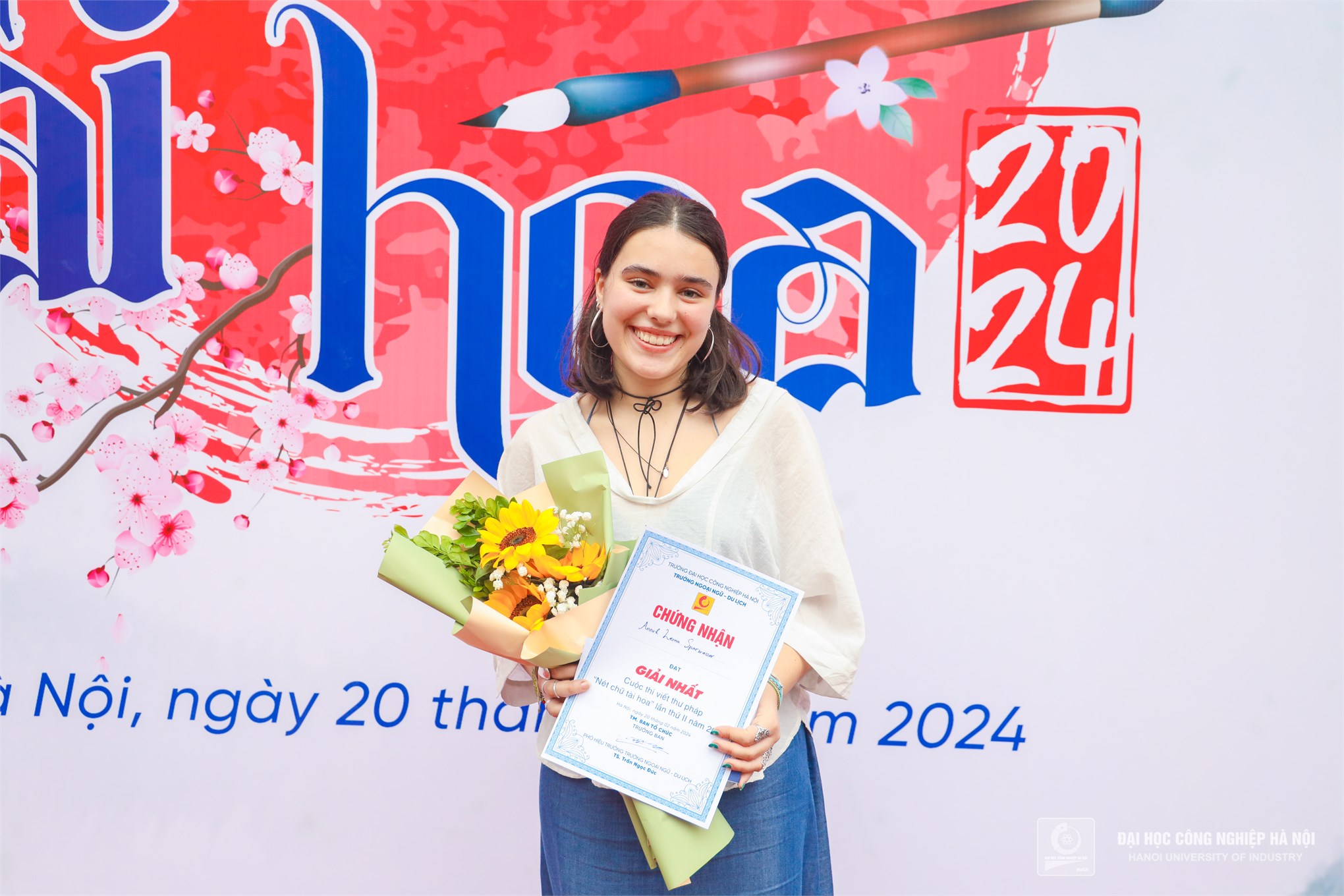 Mang đến cuộc thi với thông điệp ý nghĩa về tình yêu cho tất cả nhân loại, Anouk Sparwasser, đến từ Đức, hiện đang là giảng viên tại Đại học Công nghiệp Hà Nội đã xuất sắc đạt giải nhất cuộc thi Nét chữ tài hoa. “Bởi trên Thế giới vẫn còn sự ghét bỏ, thù hận và chiến tranh. Vì vậy, tình yêu cho tất cả nhân loại xứng đáng để chúng ta tôn vinh.”, Anouk Sparwasser chia sẻ.