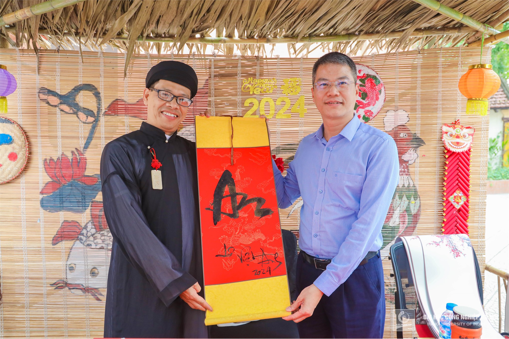 PGS.TS.Lê Ba Phong – Phó Hiệu trưởng Trường Ngoại ngữ - Du lịch (HaUI) và nghệ nhân thư pháp Nguyễn Văn Nguyên - Viện Nghiên cứu Trung Quốc – Viện Hàn lâm Khoa học Xã hội Việt Nam trao giải Nhì