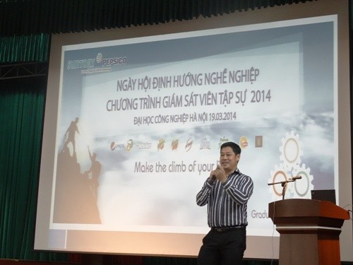 Sáng ngày 19/3/2014, gần 600 sinh viên Nhà trường đã có mặt tại Hội trường tầng 3, nhà A11 tham dự “Ngày hội định hướng nghề nghiệp cho chương trình Giám sát viên tập sự - Khối nhà máy” do Nhà trường phối hợp với công ty Pepsico Việt Nam tổ chức.