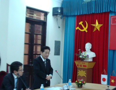 Phát biểu tại buổi làm việc, Ngài Yoshito Sengoku thay mặt Đoàn công tác cảm ơn sự tiếp đón nồng hậu của trường Đại học Công nghiệp Hà Nội. Ngài cũng nêu rõ mục đích của chuyến thăm Nhà trường lần này là để thị sát các hoạt động của Dự án Jica – HaUI. Ngài Yoshito Sengoto đánh giá cao sự phát triển thành công của Dự án và mong muốn Dự án này sẽ tiếp tục được bổ sung, mở rộng hơn nữa, đào tạo được nhiều HSSV có tay nghề tốt nhằm cung cấp nhân lực cho các doanh nghiệp của Nhật Bản tại Việt Nam…