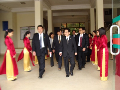 Sáng 26/02, Ngài Yoshito Sengoku - Quyền chủ tịch Đảng dân chủ Nhật Bản và đại diện Đại sứ quán Nhật Bản, đại diện văn phòng JICA Việt Nam đến thăm và làm việc với trường
