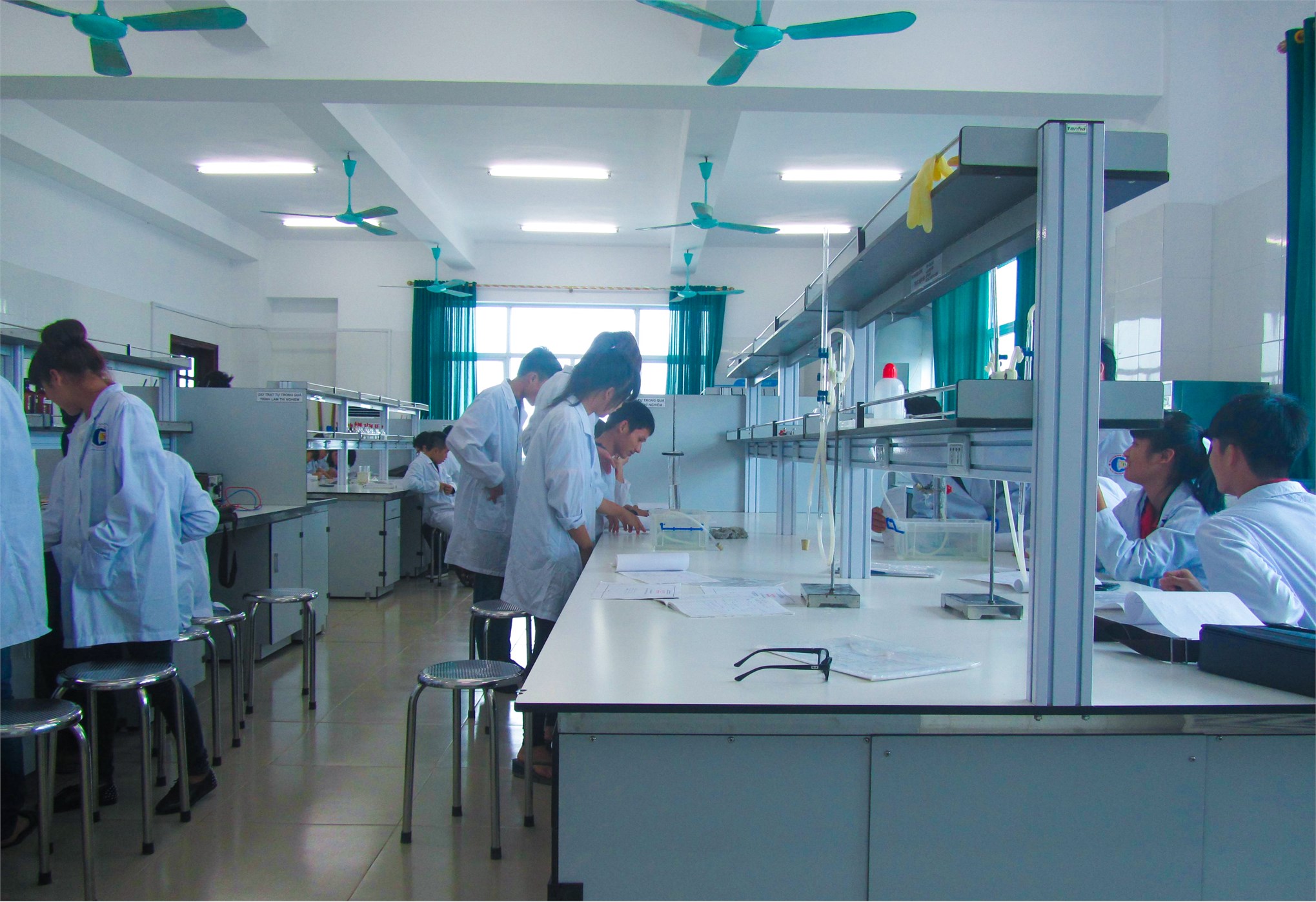Sinh viên khoa CN Hóa thực hành trong phòng thí nghiệm với nhiều trang thiết bị hiện đại