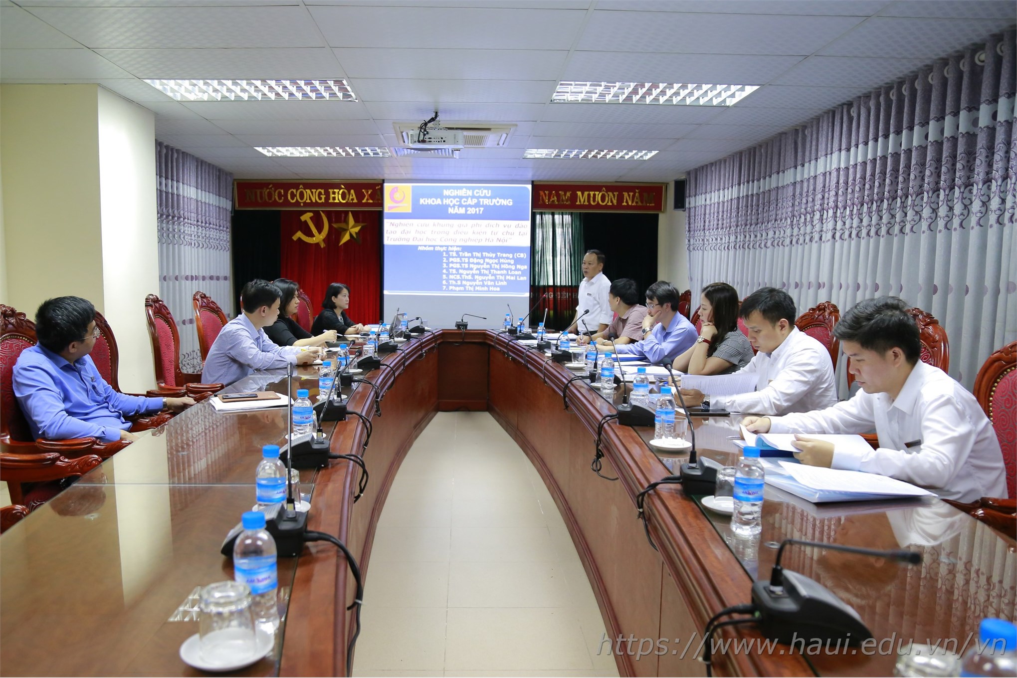 Chiều ngày 20/02/2019, Hội đồng khoa học Trường Đại học Công nghiệp Hà Nội (ĐHCNHN) tổ chức nghiệm thu đề tài nghiên cứu khoa học cấp trường “Nghiên cứu khung giá phí dịch vụ đào tạo đại học trong điều kiện tự chủ tại Trường Đại học Công nghiệp Hà Nội” do TS. Trần Thị Thùy Trang - Khoa Kế toán Kiểm toán (KTKT) và đề tài “Nghiên cứu văn hóa Trường Đại học Công nghiệp Hà Nội’’ do TS. Lê Thùy Hương - Khoa Quản lý Kinh doanh (QLKD) thực hiện. TS. Nguyễn Anh Tuấn – Phó Hiệu trưởng, chủ tịch Hội đồng nghiệm thu.
