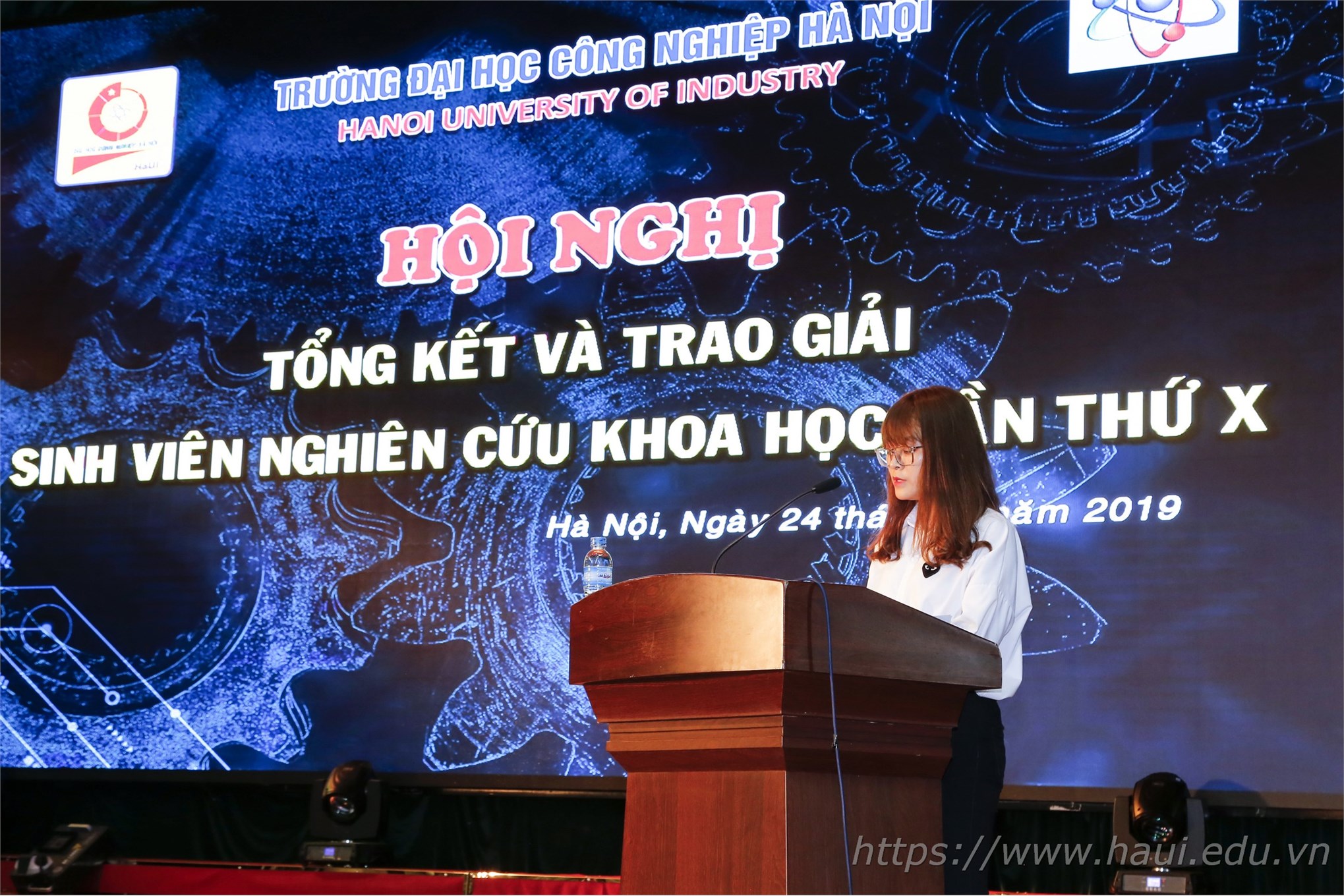 Vinh dự được thay mặt cho các bạn sinh viên tham dự lễ tổng kết và trao giải sinh viên nghiên cứu khoa học được phát biểu, Ngọc chia sẻ: chớp mắt đã 4 năm trôi qua, 4 năm cùng với những trải nghiệm tuyệt vời nhất tại ĐHCNHN. “Tuyệt vời” ở đây không có nghĩa là dễ dàng vượt qua hay an nhàn tận hưởng, mà tuyệt vời vì chúng ta đã làm được những điều mà trước đây chúng ta nghĩ là không thể. 4 năm được học tập, 4 năm được nghiên cứu và 4 năm chúng ta được học hỏi thật nhiều.
