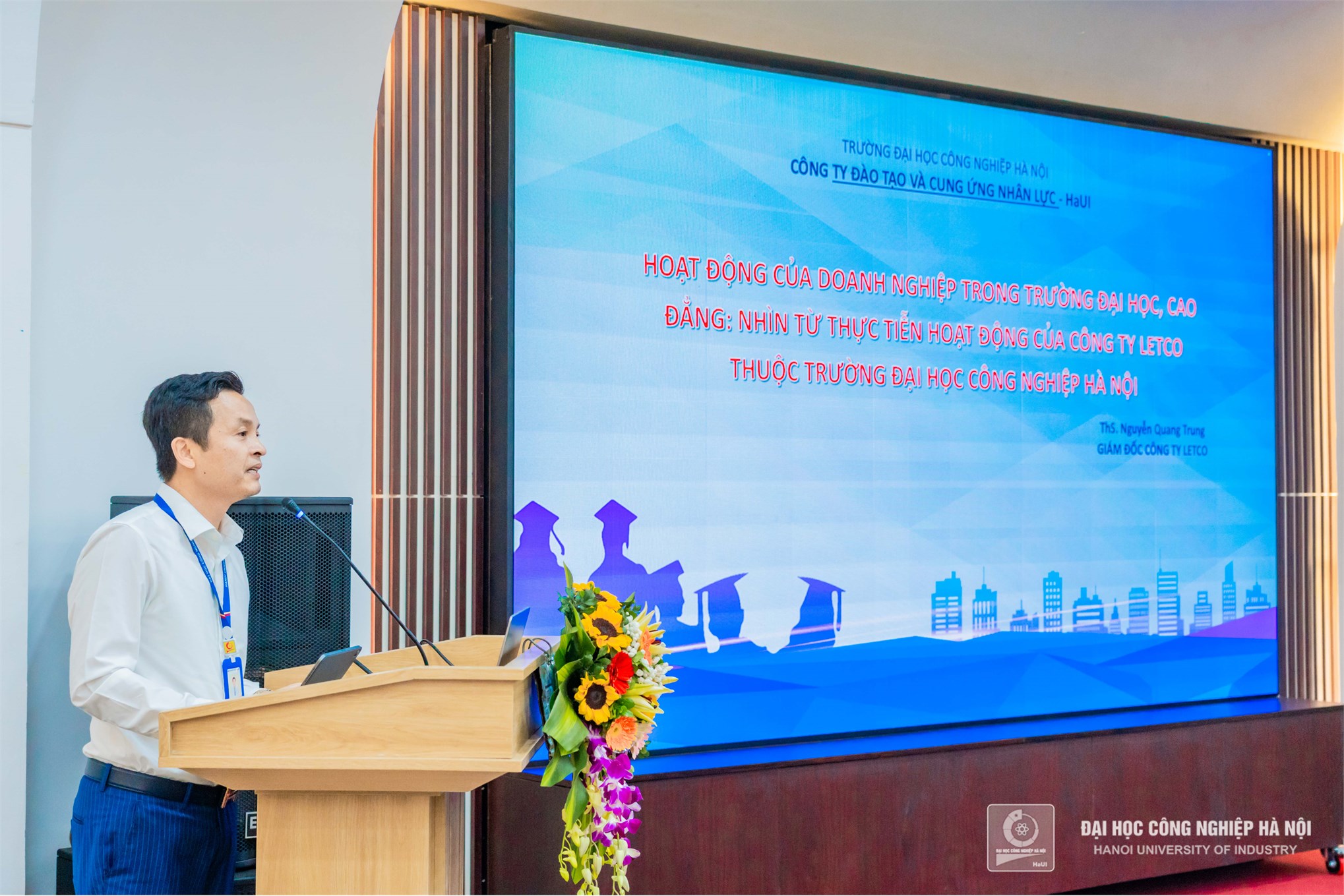 Ths.Nguyễn Quang Trung – Giám đốc Công ty LETCO, Đại học Công nghiệp Hà Nội chia sẻ về “Hoạt động của doanh nghiệp trong trường đại học, cao đẳng, nhìn từ thực tiễn hoạt động của Công ty LETCO”