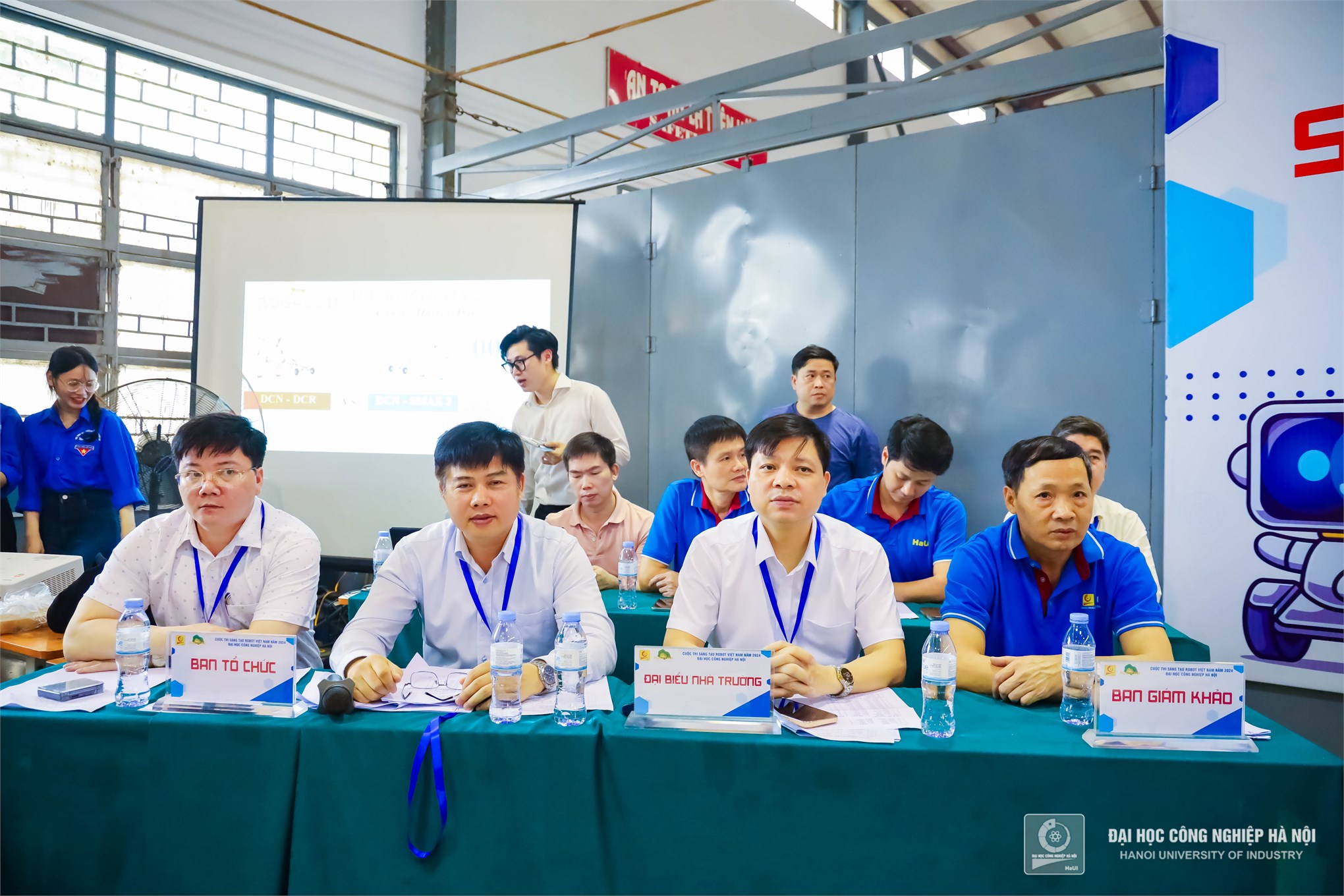 Tham dự chương trình, có: PGS.TS.Phạm Văn Bổng, Phó Hiệu trưởng; PGS.TS.Phạm Văn Đông – Phó Hiệu trưởng, Phó Trưởng ban tổ chức, Trưởng Ban giám khảo; PGS.TS. Hoàng Tiến Dũng – Hiệu trưởng Trường Cơ khí – Ô tô; PGS.TS. Nguyễn Hồng Sơn - Trưởng phòng Khoa học Công nghệ; cùng đại diện các đơn vị, các đội tuyển robot tham dự cuộc thi năm nay.