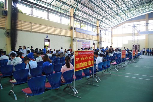 Để tiếp đón phụ huynh và các em tân sinh viên đến làm thủ tục nhanh chóng, thuận tiện, Nhà trường đã bố trí khu nhà đa năng rộng hơn 2000m2, với sức chứa gần 3000 người, các bàn tiếp đón thu lệ phí, nộp sổ đoàn viên, khu vực chuyển nghĩa vụ quân sự…được bài trí khoa học, hợp lý. Đặc biệt, nhà trường dành một khu vực riêng đón tiếp phụ huynh, trình chiếu các thông tin, hoạt động của nhà trường để phụ huynh và sinh viên hiểu rõ hơn về Nhà trường.